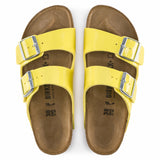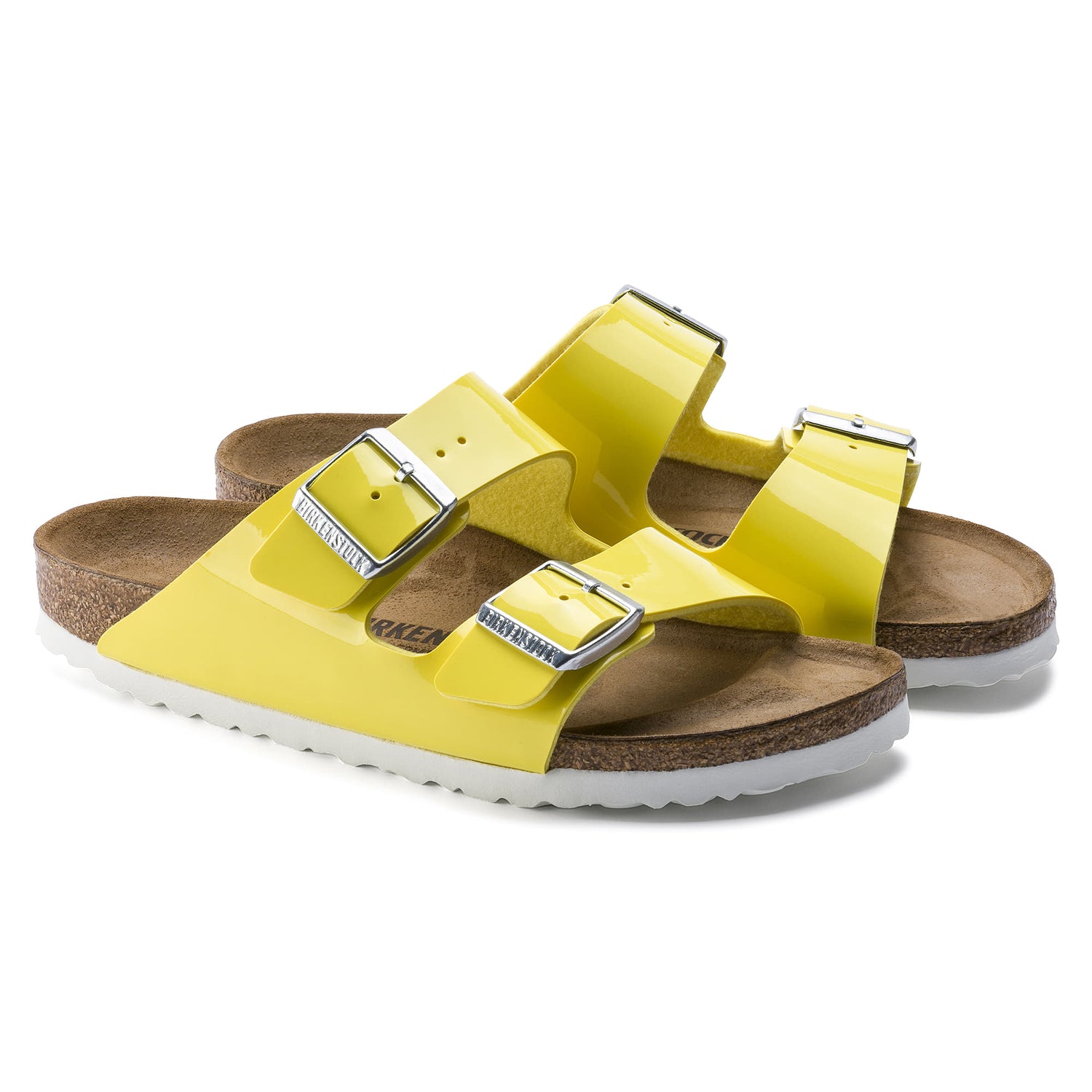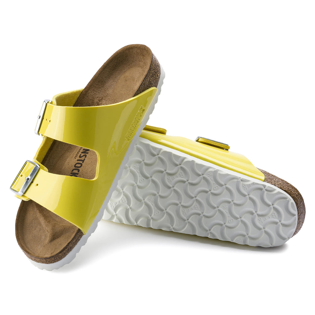The BIRKENSTOCK Arizona is a genuine classic. Here, the versatile Birko-Flor® material comes in a clean-cut, minimalist look. The patent coating brings the vivid colors to life in an especially expressive manner. Elegant and sophisticated without compromising the sandal comfort, flexibility and durability.