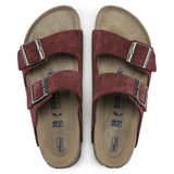 The often imitated, never duplicated, category-defining, two-strap wonder from Birkenstock Arizona Soft Footbed Suede Leather Red sandal. A comfort legend and a fashion staple. With adjustable straps and a magical cork footbed that conforms to the shape of your foot, a truly custom fit is as effortless as the classic design.