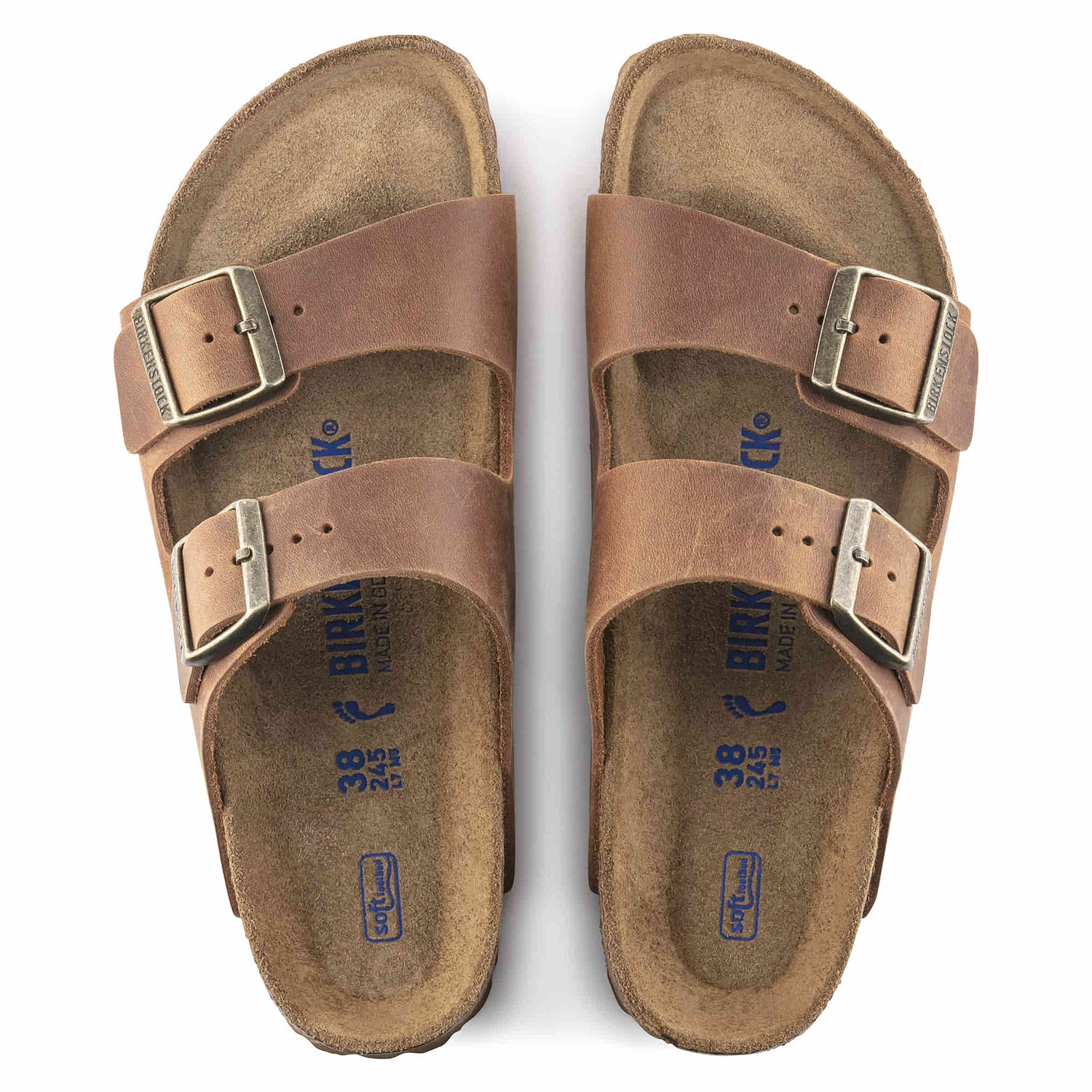 Oiled leather can be recognized by its untreated surface. BIRKENSTOCK purposely does not treat surface grains and other characteristic features. BIRKENSTOCK uses sturdy leather with a thickness of 2.8 to 3.2 millimeters as upper material.