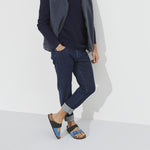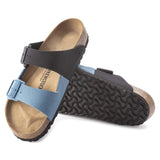 The BIRKENSTOCK Arizona is a genuine classic that has been delighting both men and women with its timeless design for decades. This version boasts color-bocking and plays with contrasts. This popular sandal has been given an update in a new material, with a vegan version now available. It is entirely free of animal products, as verified by independent testing laboratories. The upper is made from the skin-friendly, hard-wearing synthetic material Birko-Flor® in a sophisticated nubuck look which boasts a texture and color that could almost be mistaken for real leather. The color-coordinated buckles with a textile feel and a matte design are additional eye-catchers.