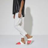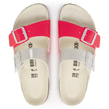 The BIRKENSTOCK Arizona is a genuine classic that has been delighting both men and women with its timeless design for decades. This version features bold neon colors. This popular sandal has been given an update in a new material, with a vegan version now available. It is entirely free of animal products, as verified by independent testing laboratories. The upper is made from the skin-friendly, hard-wearing synthetic material Birko-Flor® with a shiny patent coating.
