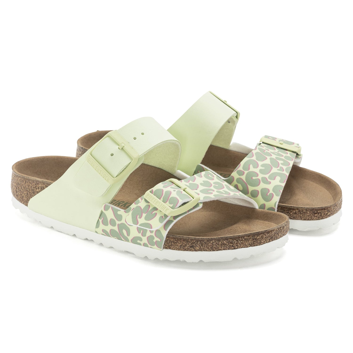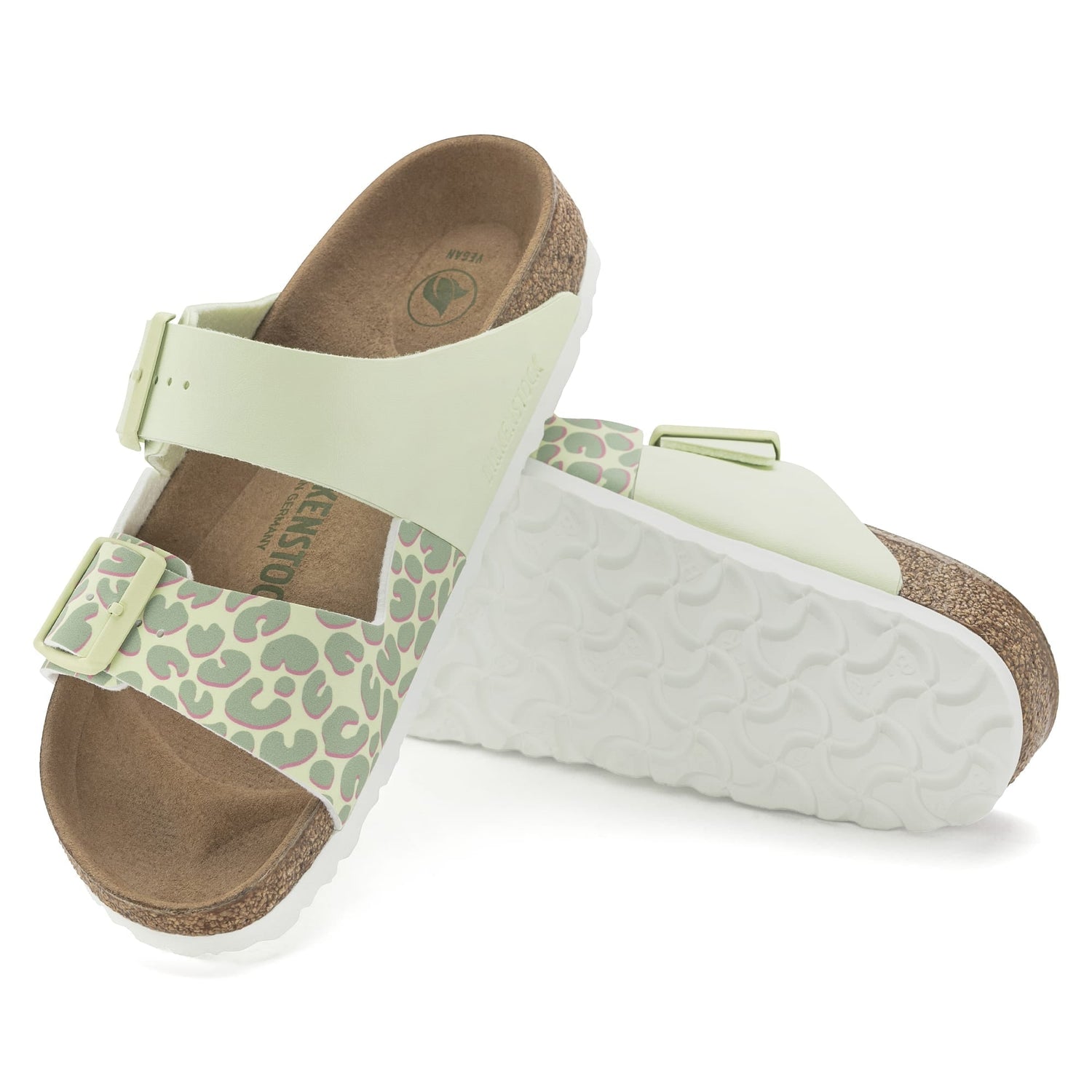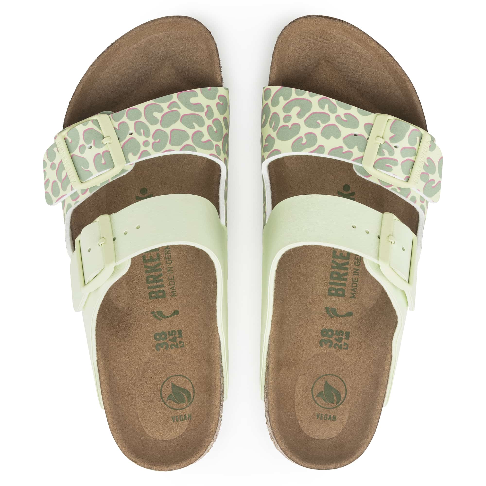 The BIRKENSTOCK Arizona is a genuine classic that has been delighting both men and women with its timeless design for decades. This version is inspired by color blocking and features an exotic print. This popular sandal has been given an update in a new material, with a vegan version now available. It is entirely free of animal products, as verified by independent testing laboratories. The color-coordinated buckles with a textile feel and a matte design are additional eye-catchers. The upper is made from the skin-friendly, hard-wearing synthetic material Birko-Flor®.