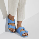 The BIRKENSTOCK Arizona is a genuine classic that has been delighting both men and women with its timeless design for decades. This popular sandal has been given an update in a new material, with a vegan version now available. It is entirely free of animal products, as verified by independent testing laboratories. The color-coordinated buckles with a textile feel and a matte design as well as the color-coordinated outsole are additional eye-catchers. The upper is made from a soft fabric.
