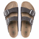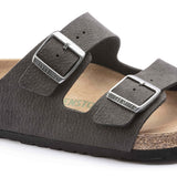 The BIRKENSTOCK Arizona is a genuine classic that has been delighting both men and women with its timeless design for decades. The color-coordinated outsole rounds off the shoes look of sophistication. This classic model has been given an update in a new material, with a vegan version now available. It is entirely free of animal products, as verified by independent testing laboratories. The upper is made from skin-friendly microfiber. The sandal boasts sophisticated material use with a matte finish thats reminiscent of natural leather while nevertheless being 100% vegan.