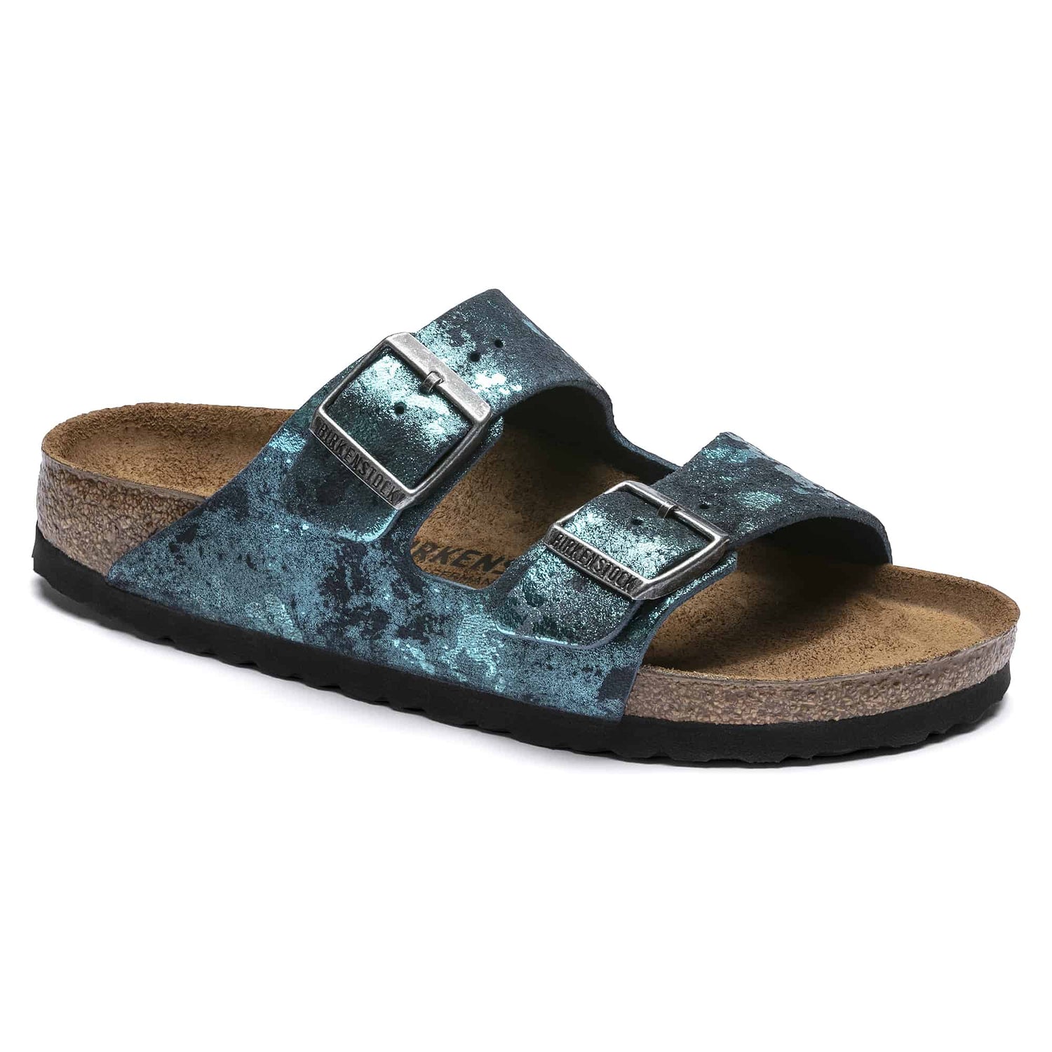 The BIRKENSTOCK Arizona is a genuine classic that has been delighting both men and women with its timeless design for decades. This version features a metallic foil in a vintage look. This model is perfect for anyone who wants their shoe to have a patina from the outset. The creative production process means that no two pairs are the same. The color-coordinated footbed and the buckles round off the shoe's look of sophistication. The upper is made from soft suede.
