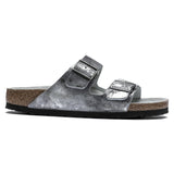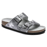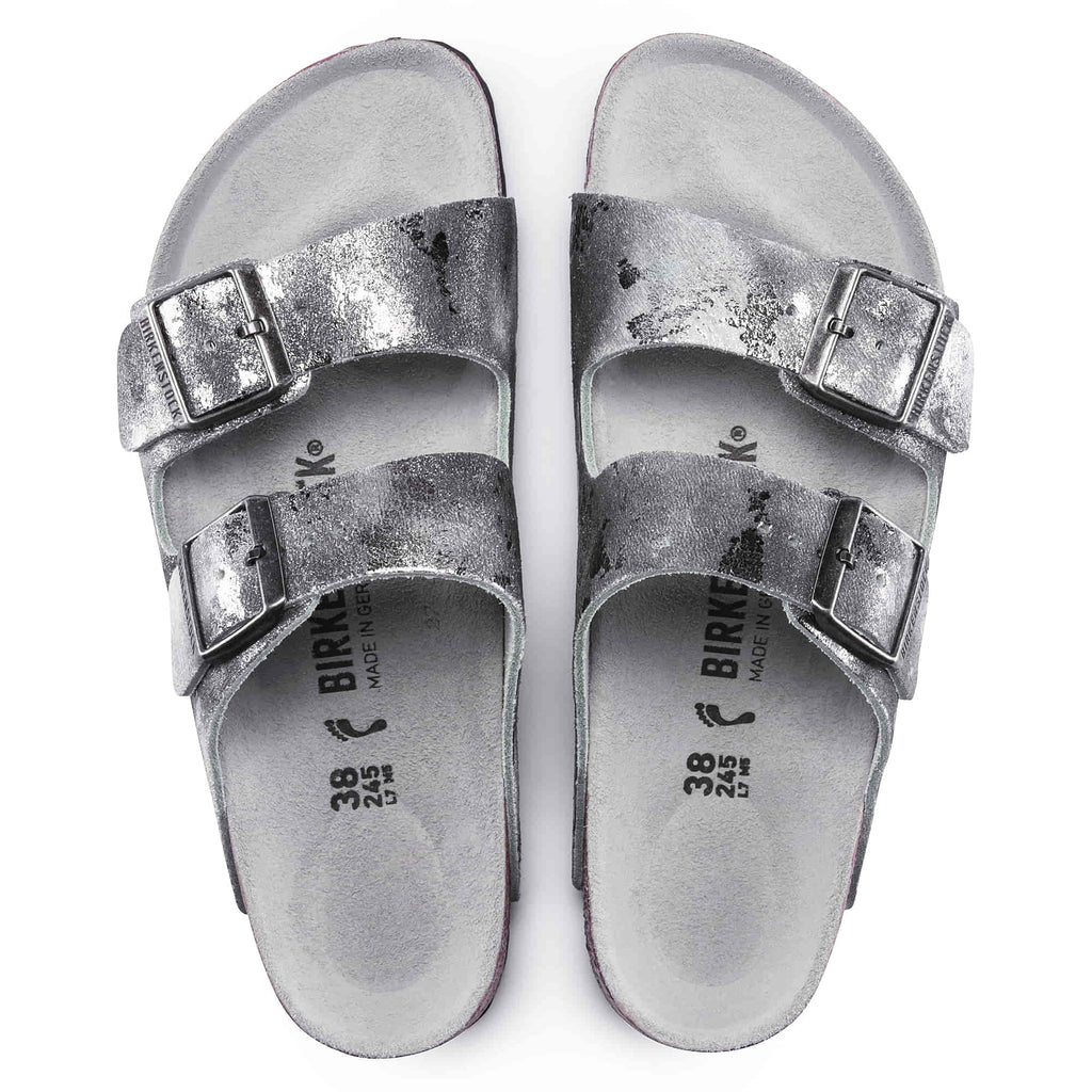 The BIRKENSTOCK Arizona is a genuine classic that has been delighting both men and women with its timeless design for decades. This version features a metallic foil in a vintage look. This model is perfect for anyone who wants their shoe to have a patina from the outset. The creative production process means that no two pairs are the same. The color-coordinated footbed and the buckles round off the shoe look of sophistication. The upper is made from soft suede.