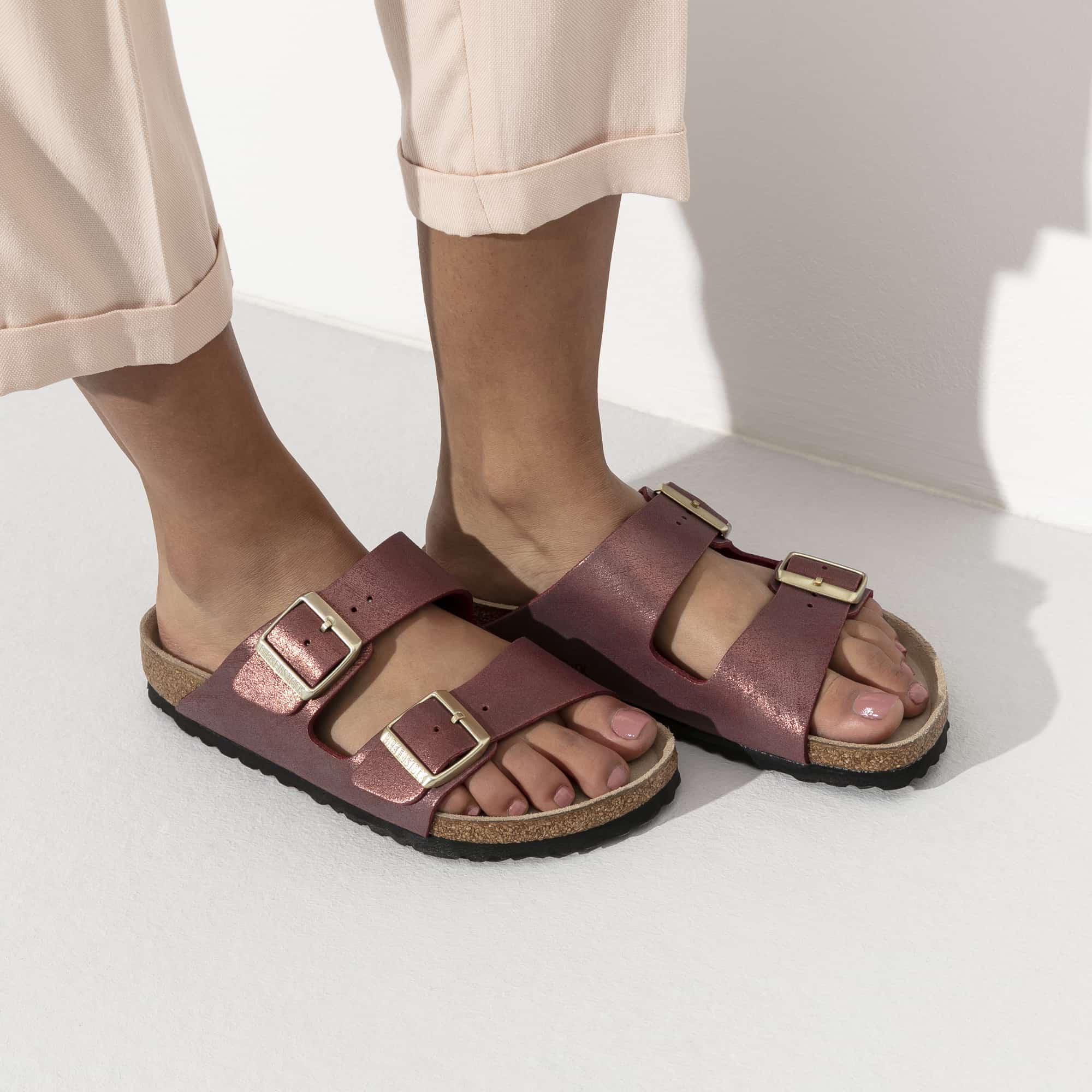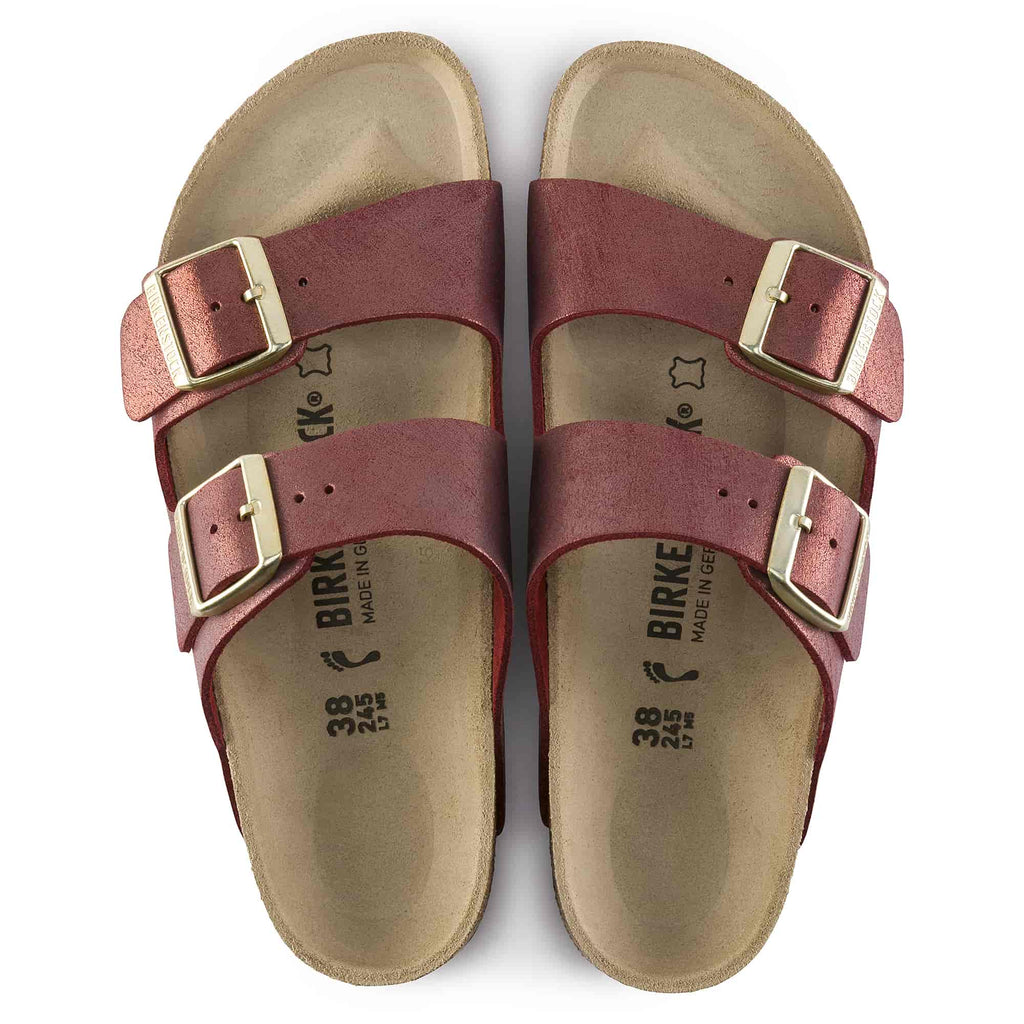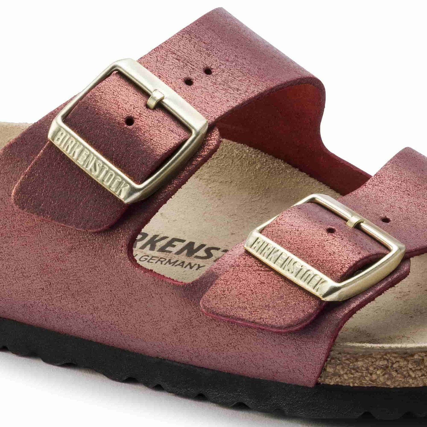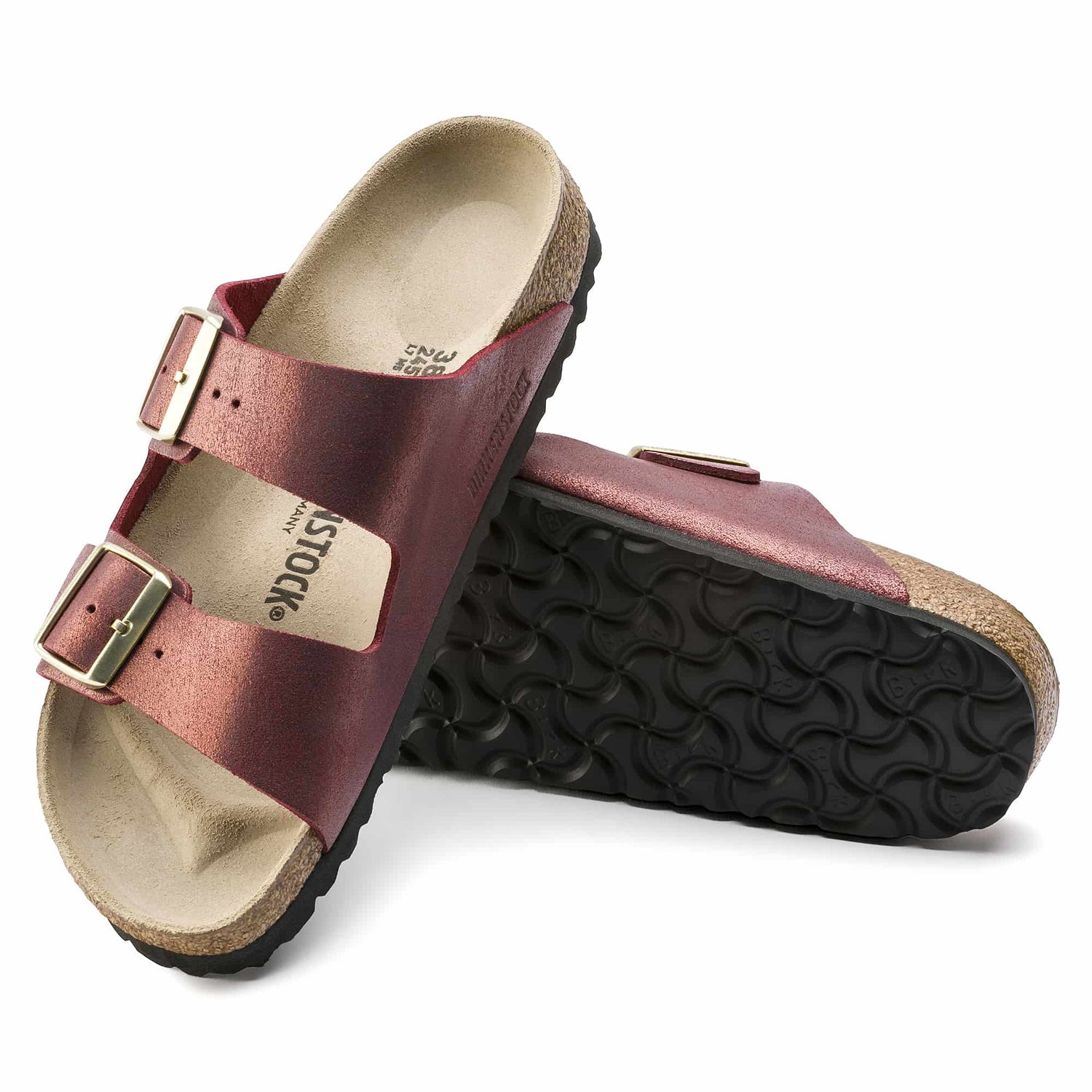 The often imitated, never duplicated, two-strap classic from BIRKENSTOCK - the Arizona is a comfort legend and a fashion staple. Offered here in a luxurious washed metallic leather. This finish has a subtle vintage look that can vary from shoe to shoe and intensifies with frequent wear.