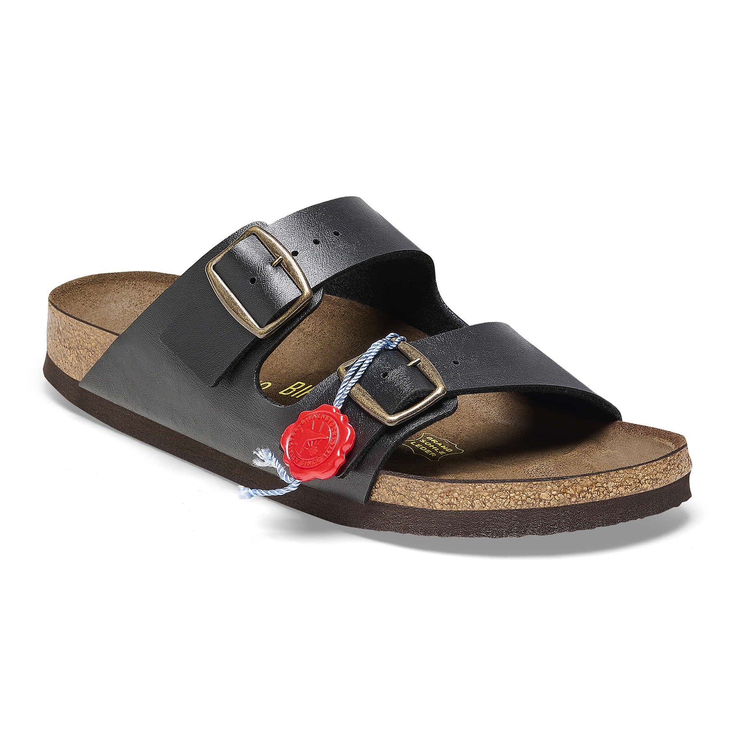 The BIRKENSTOCK Arizona is a genuine classic that has been delighting both men and women for decades. This simple sandal with two straps stands for timeless design and has long held cult status thanks to its comfort factor. We are now giving this popular classic the opportunity to show off its original design in our anniversary collection. With its buckles, the footbed stamp, the outsole, and the packaging, the sandal replicates the 1973 original and exudes veritable retro flair. The upper is made from skin-friendly Birko-Flor® in a vintage sportswear look.