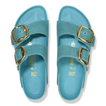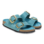 - Details: two straps, each with an individually adjustable metal pin buckle; color-coordinated footbed