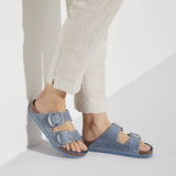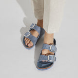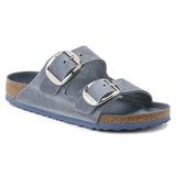 The BIRKENSTOCK Arizona is a genuine classic that has been delighting both men and women with its timeless design for decades. The Big Buckle version features a large, elegant pin buckle a fantastic, striking eye-catcher on this otherwise understated sandal. The lining of the semi-exquisite footbed is covered with soft smooth leather and matches the shoe in color. The upper is made from extra thick, oiled nubuck leather with an open-selvage finish.