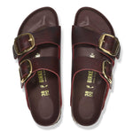 - Details: two straps, each with an individually adjustable metal pin buckle; color-coordinated footbed