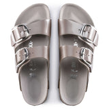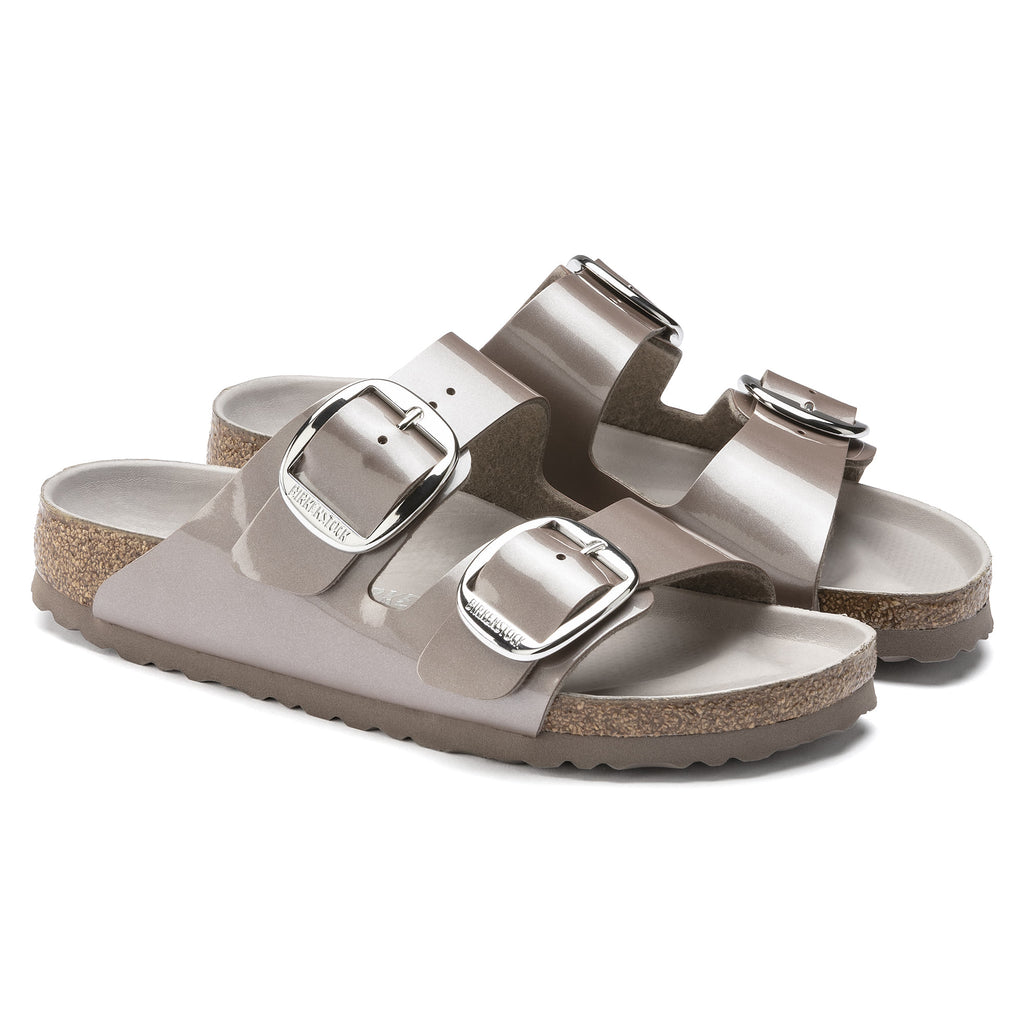 The BIRKENSTOCK Arizona sandal is a true classic with a timeless design that has inspired both men and women alike for decades. The Big Buckle model features a large, elegant pin buckle a great, stunning eye-catcher on this otherwise simple sandal. The upper is made of Birko-Flor®, a skin-friendly, durable, synthetic material with a shiny patent finish.