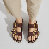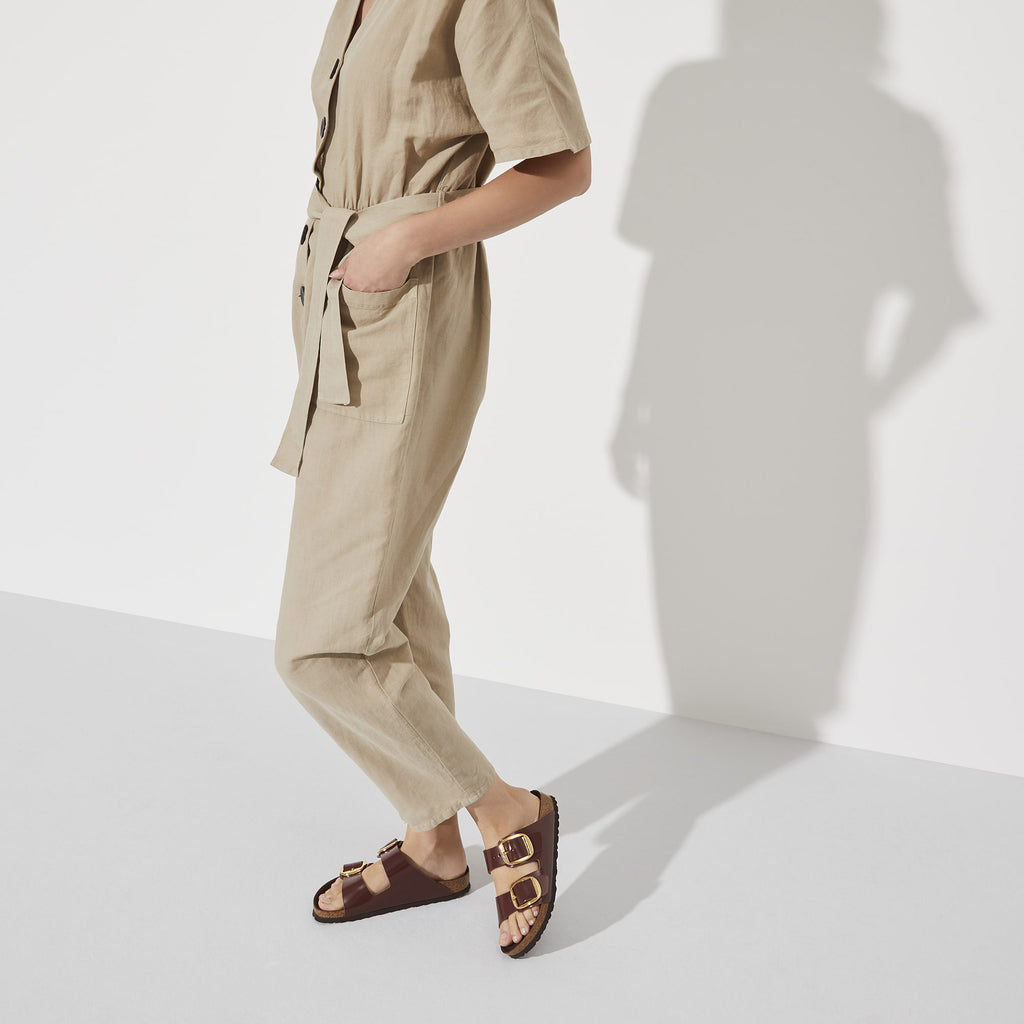 The BIRKENSTOCK Arizona is a genuine classic that has been delighting both men and women with its timeless design for decades. The Big Buckle version features a large, elegant pin buckle. The semi-exquisite footbed is fully lined with soft piumato leather, making it exceptionally comfortable. The upper is made from high-quality natural leather with a shiny patent coating.