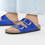 The BIRKENSTOCK Arizona is a genuine classic that has been delighting both men and women with its timeless design for decades. The Big Buckle version features a large, elegant pin buckle. The semi-exquisite footbed is fully lined with soft piumato leather, making it exceptionally comfortable. The upper is made from high-quality natural leather with a shiny patent coating.