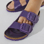 The BIRKENSTOCK Arizona is a genuine classic that has been delighting both men and women with its timeless design for decades. The Big Buckle version features a large, elegant pin buckle. The semi-exquisite footbed is fully lined with soft piumato leather, making it exceptionally comfortable. The upper is made from high-quality natural leather with a shiny patent coating.