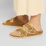 The BIRKENSTOCK Arizona is a genuine classic that has been delighting both men and women with its timeless design for decades. This model comes in a particularly cozy version with a color-coordinated shearling lining and straps lined with shearling as well as a big, elegant pin buckle. The upper is made from extra thick, oiled nubuck leather with an open-selvage finish.