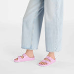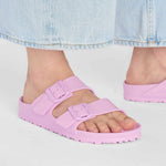 Birkenstock's EVA footbed is designed to provide a more flexible and lightweight alternative to the traditional cork-latex footbed. EVA footbeds are water-resistant and can be easier to clean.