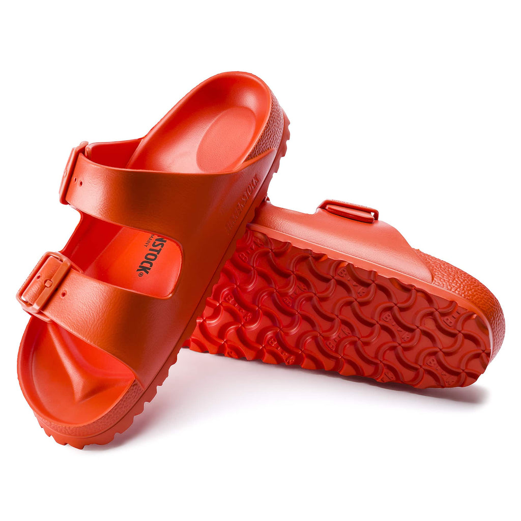 The BIRKENSTOCK Arizona is a genuine classic that has been delighting both men and women with its timeless design for decades. Modeled on the cork original, this sandal is made from ultra lightweight and highly flexible EVA. This high-quality, odor-neutral synthetic material which has been tested for harmful substances is shock-absorbent, waterproof, and skin-friendly. It is therefore perfect for wearing on the beach, in the garden, or in wellness and spa areas.