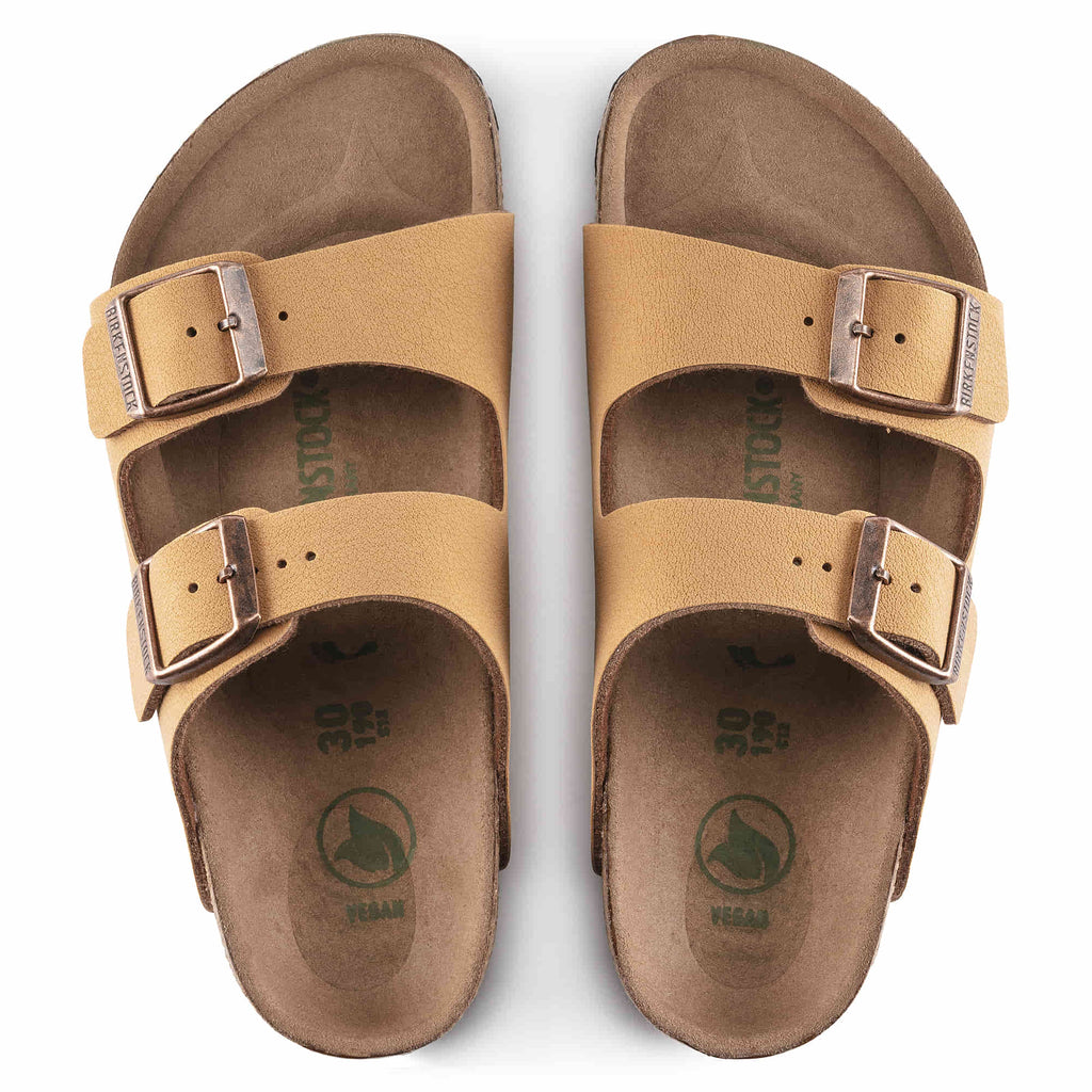 The BIRKENSTOCK Arizona is a genuine classic that has been delighting wearers with its timeless design for decades. The two-strap model fits kids feet perfectly even during boisterous play! This popular sandal has been given an update in a new material, with a vegan version now available. It is entirely free of animal products, as verified by independent testing laboratories. The upper is made from the skin-friendly, hard-wearing synthetic material Birko-Flor® in a sophisticated nubuck look which boasts a texture and color that could almost be mistaken for real leather.