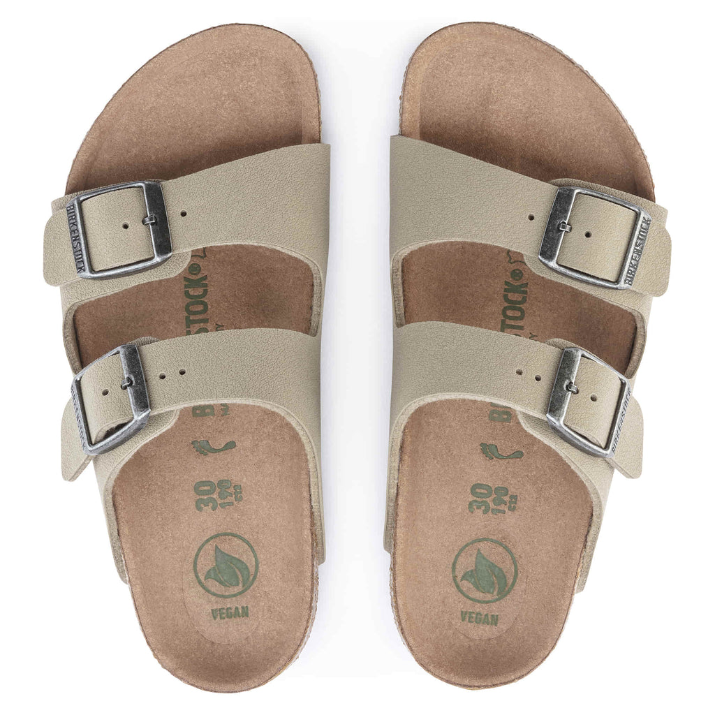The BIRKENSTOCK Arizona is a genuine classic that has been delighting wearers with its timeless design for decades. The two-strap model fits kids' feet perfectly even during boisterous play! This popular sandal has been given an update in a new material, with a vegan version now available. It is entirely free of animal products, as verified by independent testing laboratories. The upper is made from the skin-friendly, hard-wearing synthetic material Birko-Flor® in a sophisticated nubuck look which boasts a texture and color that could almost be mistaken for real leather.