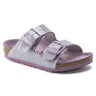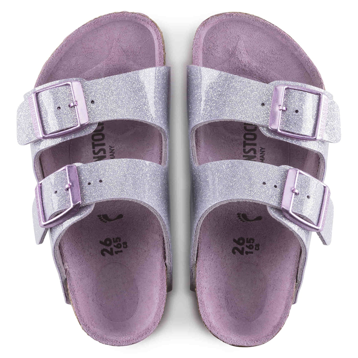 BIRKENSTOCK has reinterpreted the classic Arizona model in a child-friendly design featuring a stylish metallic look. These seemingly enchanted mules are just the ticket for little pixies.