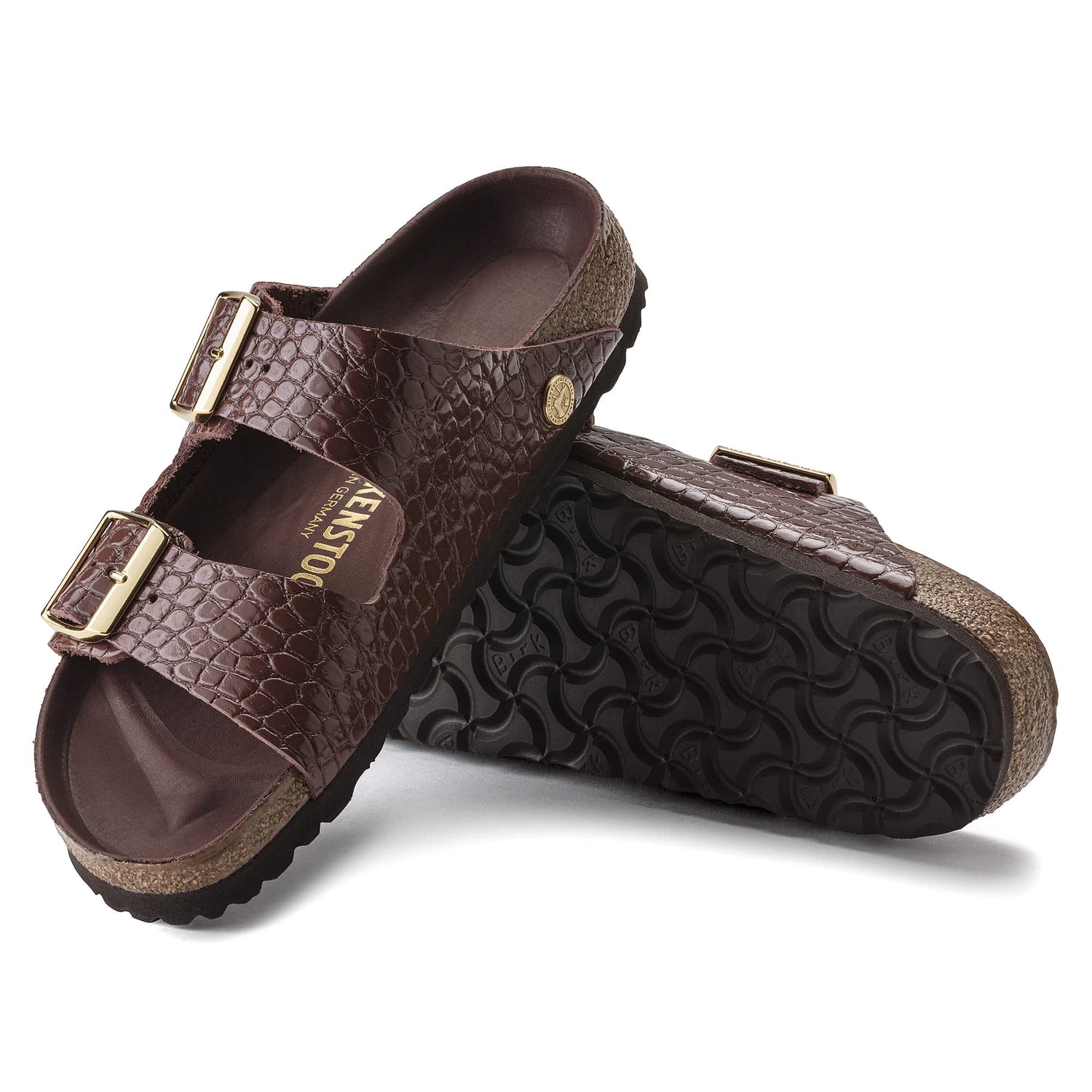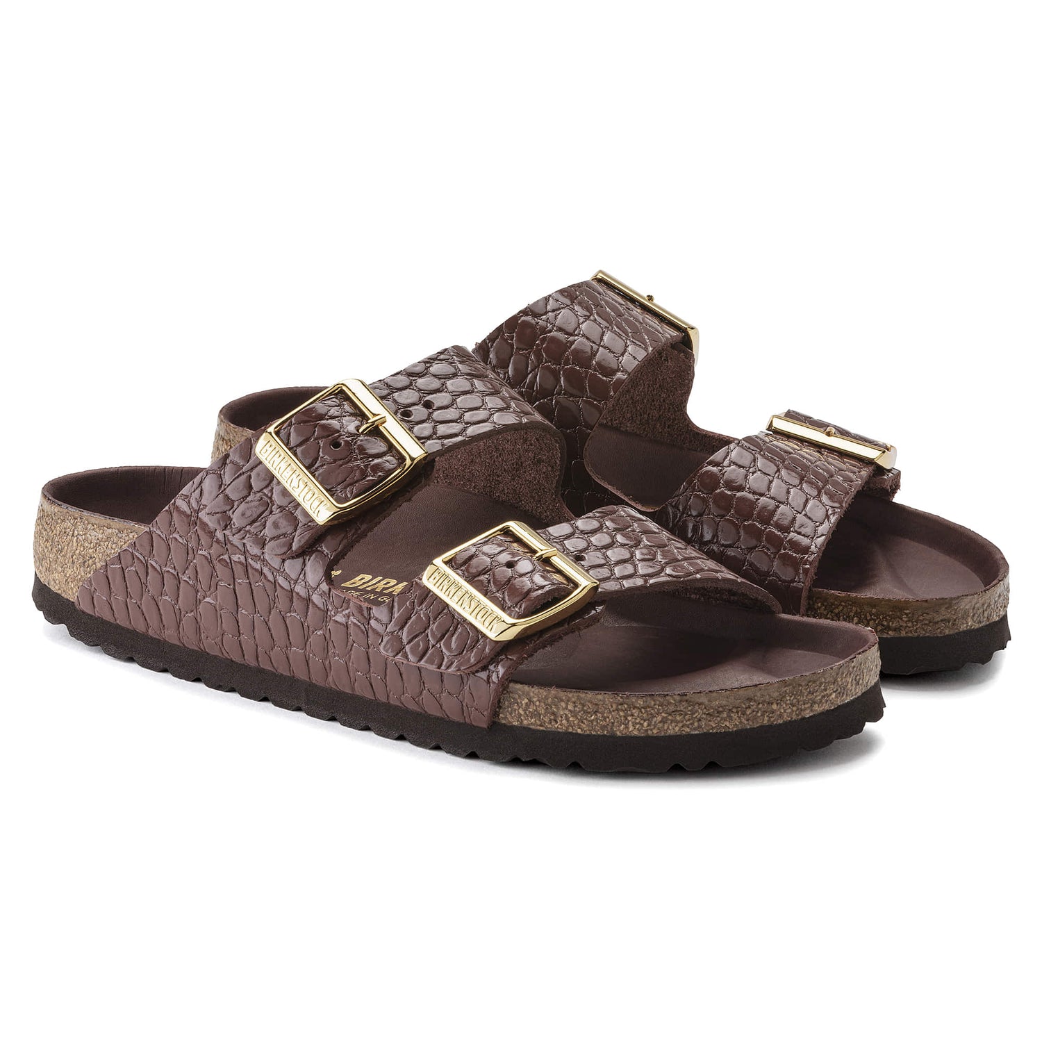 The BIRKENSTOCK Arizona is a genuine classic that has been delighting both men and women with its timeless design for decades. This version boasts a reptile leather look and feel. Inspired by nature, no two shoes have the same look and feel. The color-coordinated outsole rounds off the shoes look of sophistication. The semi-exquisite footbed is fully lined with soft piumato leather, making it exceptionally comfortable. The upper is made from embossed natural leather.