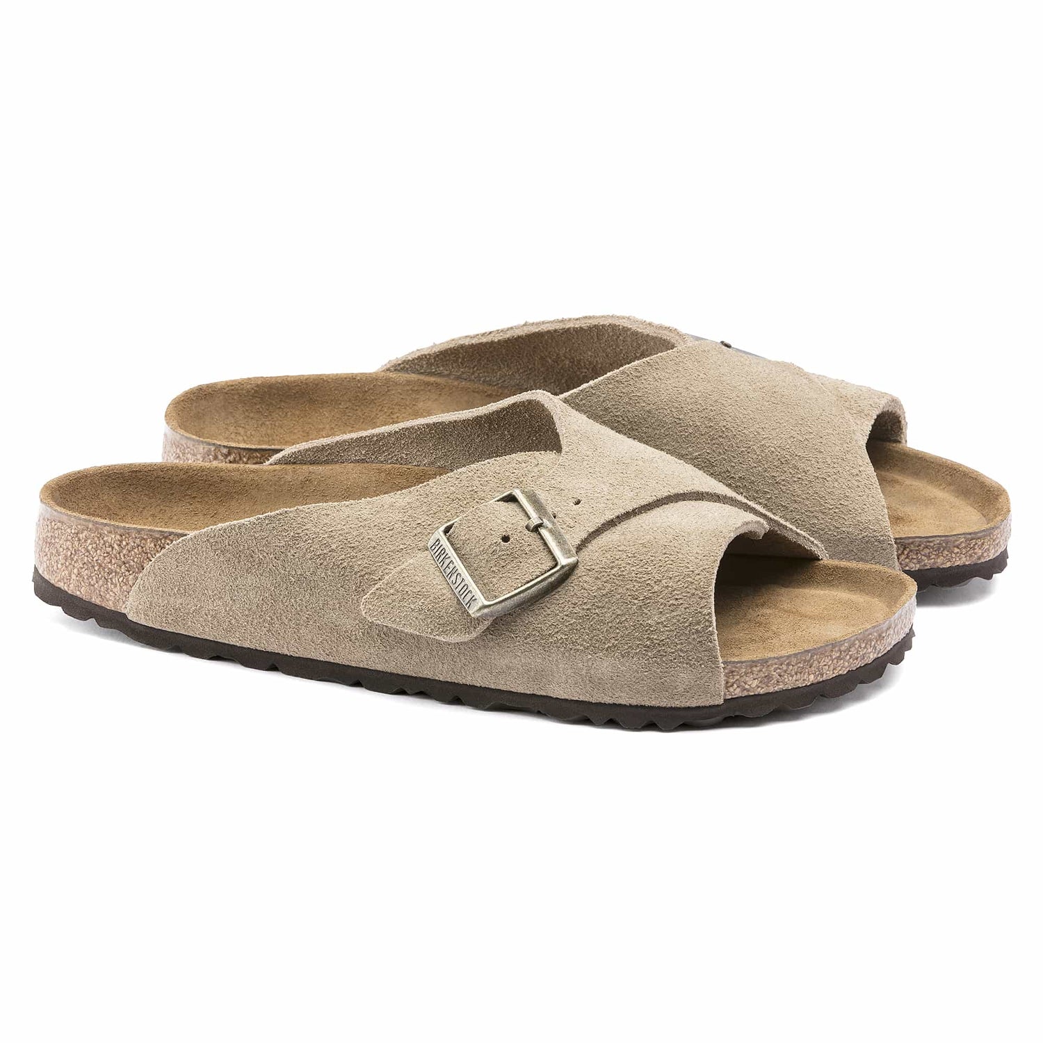 The BIRKENSTOCK Arosa combines the stability of an enclosed shoe with the lightness of a sandal. Although closed at the sides, this version is open at the toes and heel to ensure the feet get enough fresh air. With its additional foam layer, the soft footbed offers extra comfort and pampers feet “ all day long. The color-coordinated pin buckles round off the shoes look of sophistication. The upper is made from especially soft suede which hugs the foot like a second skin.