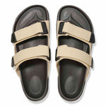 The BIRKENSTOCK Atacama is a variation on the classic Arizona and is the perfect sandal for anyone who is on their feet all day. The pin buckles have been replaced by hook-and-loop fasteners and the heel of the sole has been reinforced. Perfect for all active and adventurous BIRKENSTOCK fans. The polyurethane sole is affixed to the footbed in two layers and therefore offers maximum flexibility, grip and durability. The upper is made from the skin-friendly, hard-wearing synthetic material Birko-Flor® which was reinterpreted with a futuristic look.