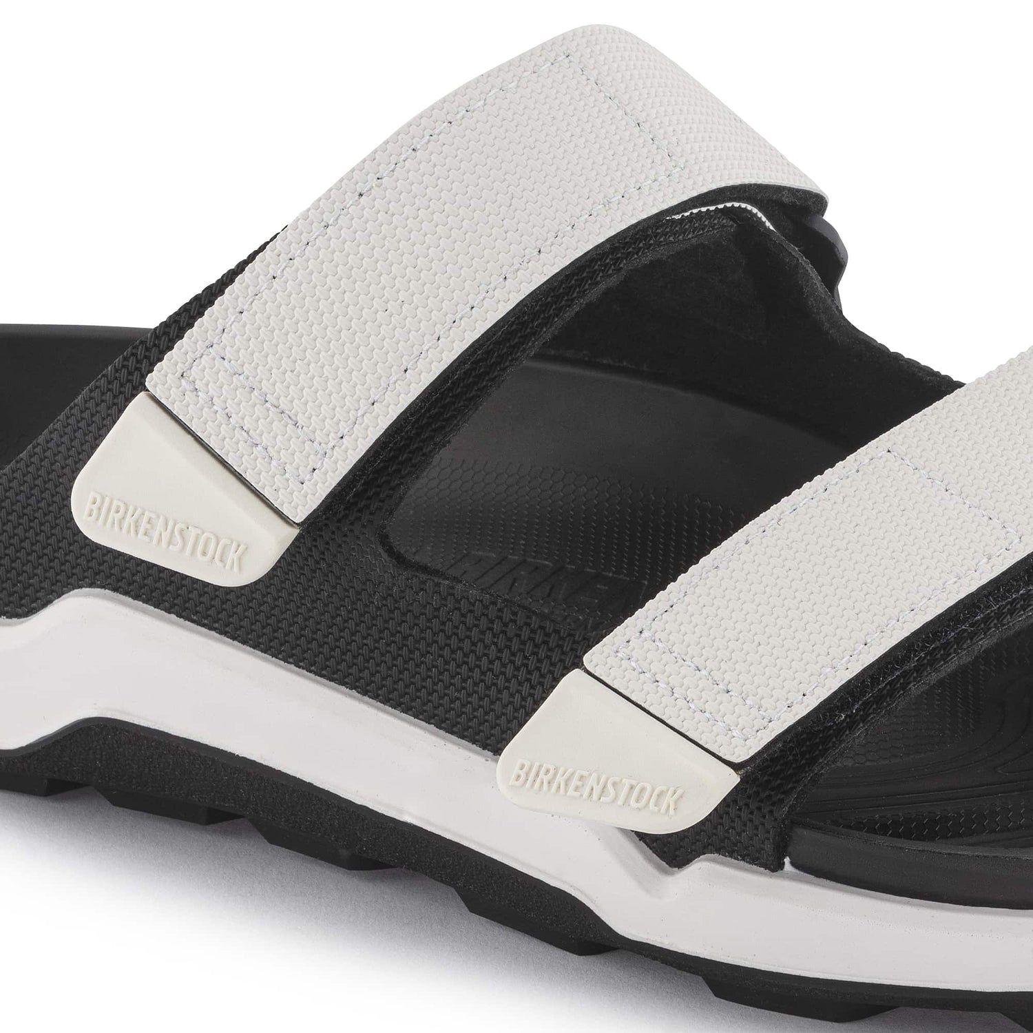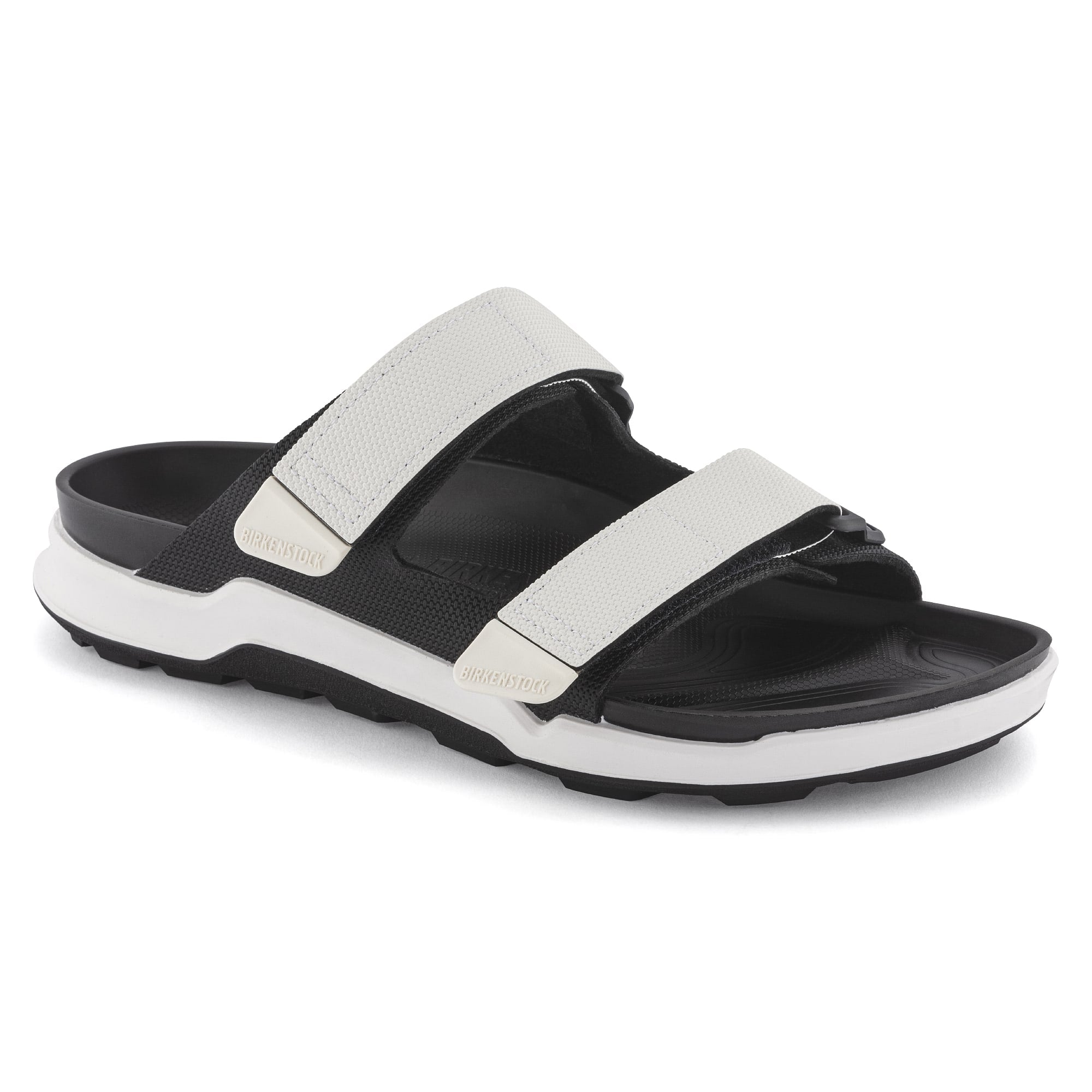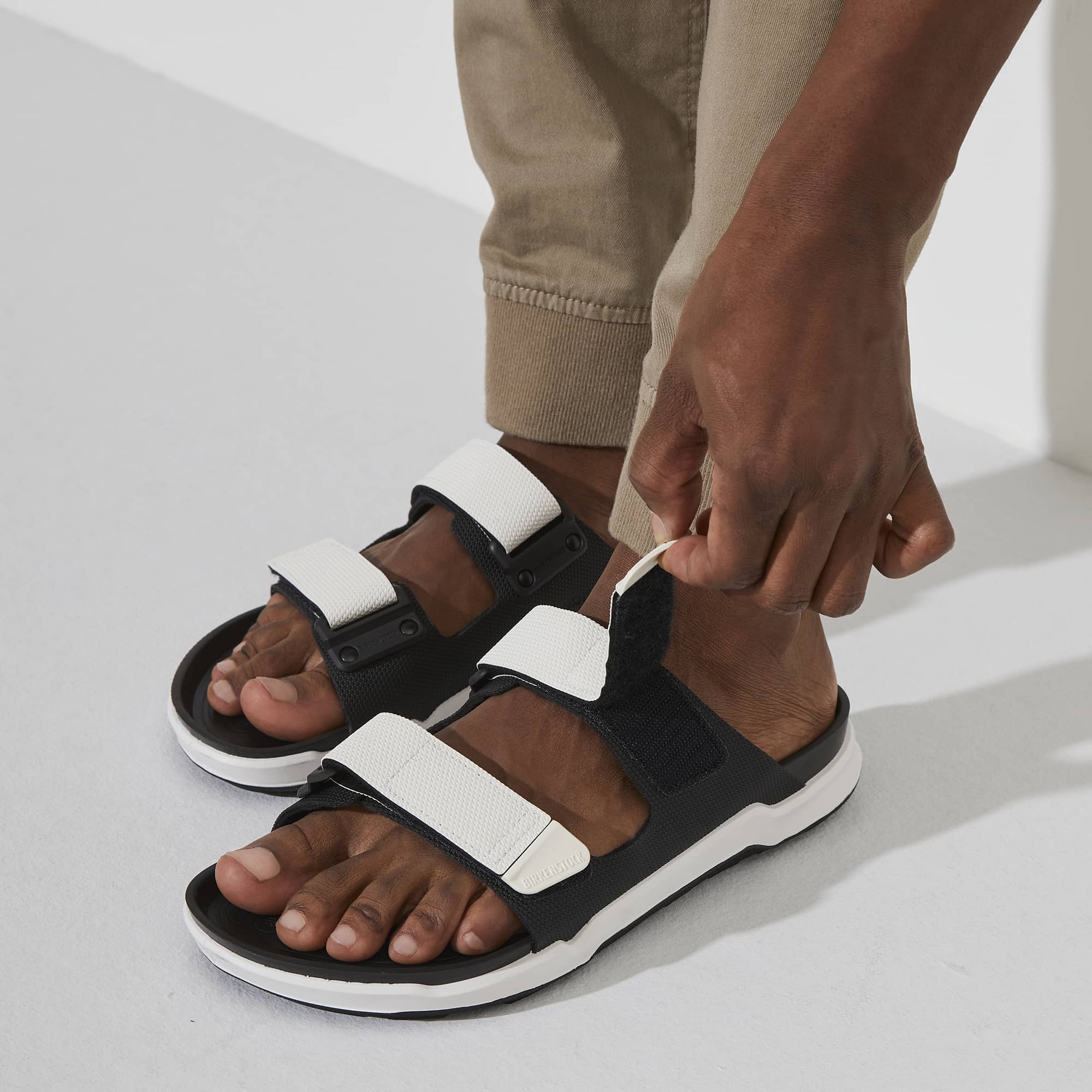 The BIRKENSTOCK Atacama is a variation on the classic Arizona and is the perfect sandal for anyone who is on their feet all day. The pin buckles have been replaced by hook-and-loop fasteners and the heel of the sole has been reinforced. Perfect for all active and adventurous BIRKENSTOCK fans. The polyurethane sole is affixed to the footbed in two layers and therefore offers maximum flexibility, grip and durability. The upper is made from the skin-friendly, hard-wearing synthetic material Birko-Flor® which was reinterpreted with a futuristic look.
