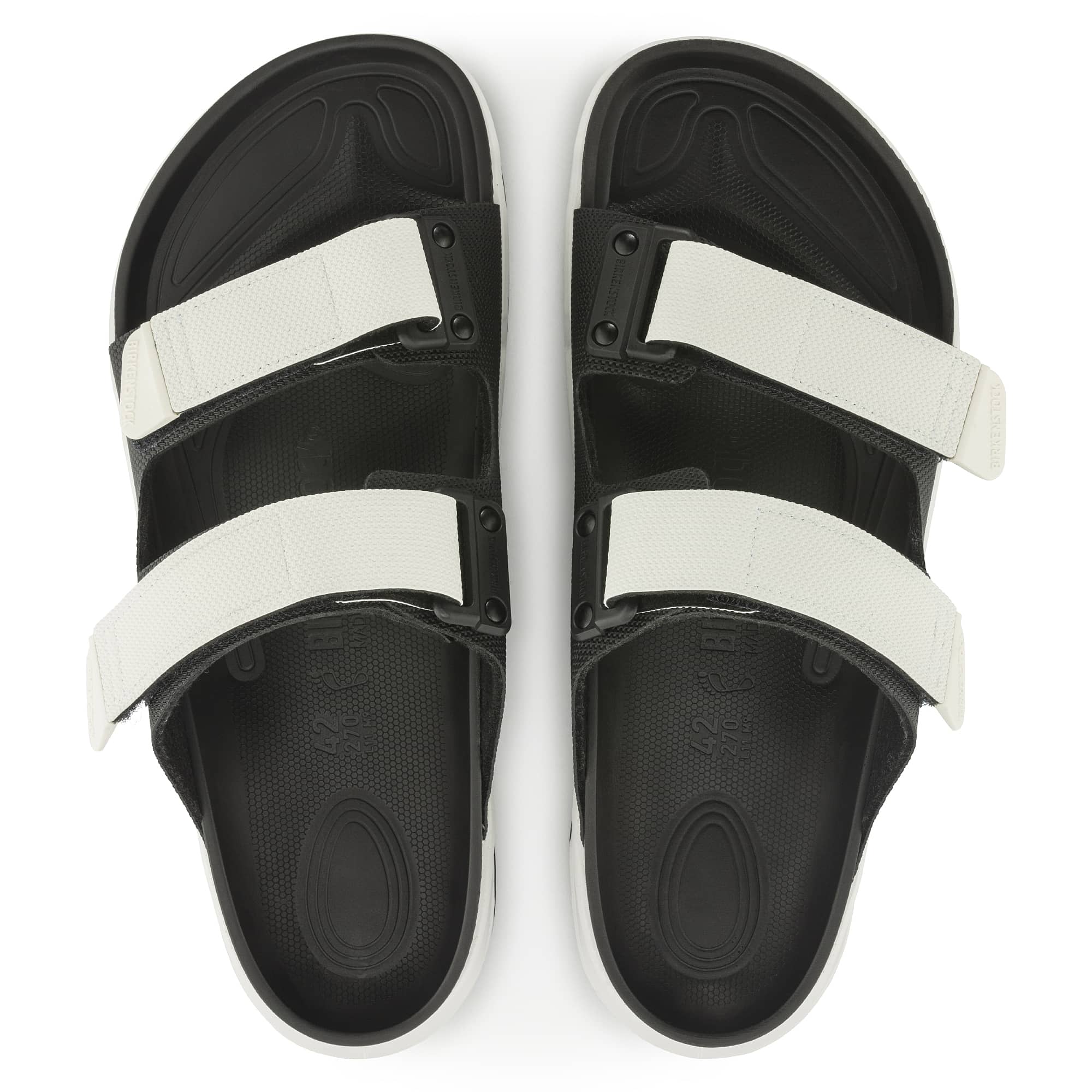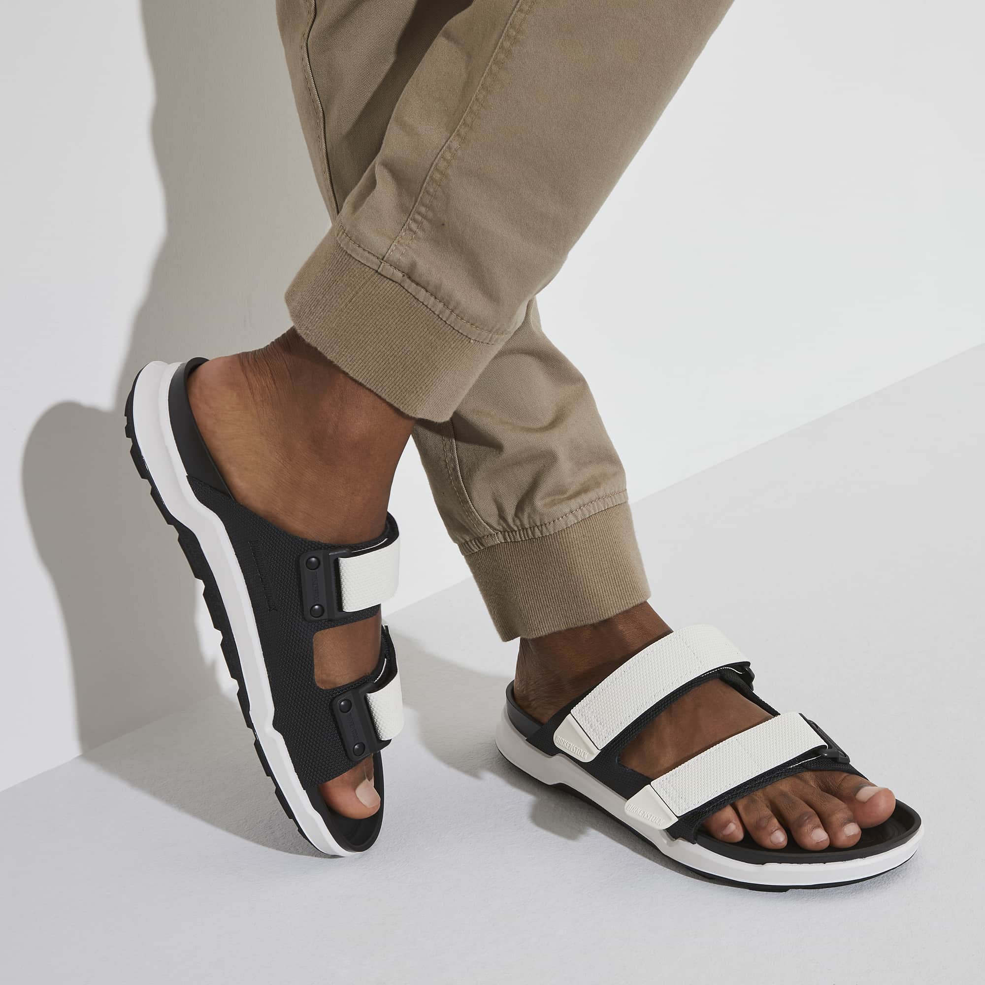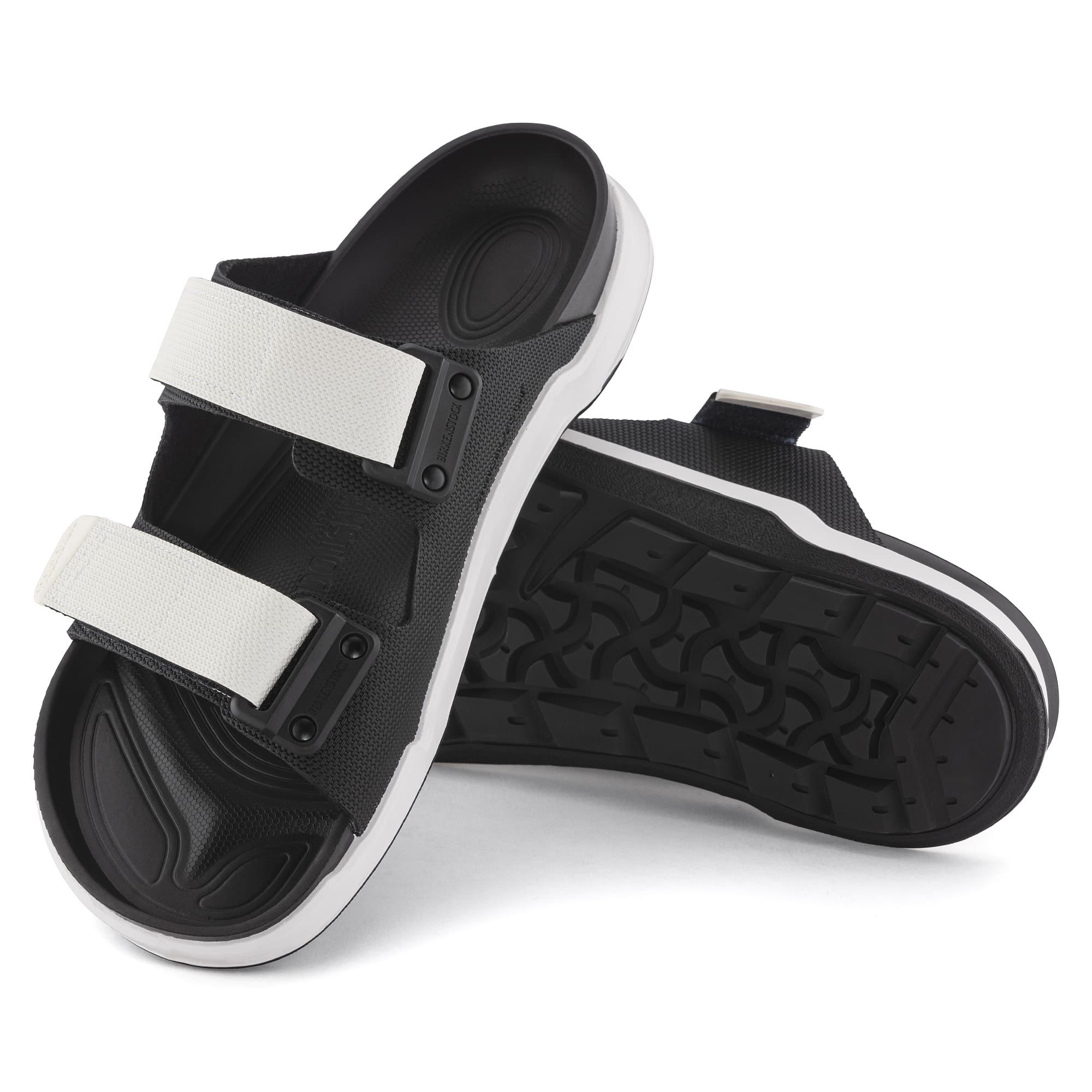 The BIRKENSTOCK Atacama is a variation on the classic Arizona and is the perfect sandal for anyone who is on their feet all day. The pin buckles have been replaced by hook-and-loop fasteners and the heel of the sole has been reinforced. Perfect for all active and adventurous BIRKENSTOCK fans. The polyurethane sole is affixed to the footbed in two layers and therefore offers maximum flexibility, grip and durability. The upper is made from the skin-friendly, hard-wearing synthetic material Birko-Flor® which was reinterpreted with a futuristic look.