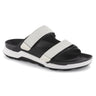 Please be sure to choose the correct width when selecting and ordering footwear. Your feet should be nestled in the footbed. This means that they should not rest on the inside and outside of the footbed edge. Just as with a regular bed – you don’t lie on the edge.