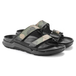 The BIRKENSTOCK Atacama is a variation on the classic Arizona and is the perfect sandal for anyone who is on their feet all day. The pin buckles have been replaced by hook-and-loop fasteners and the heel of the sole has been reinforced. Perfect for all active and adventurous BIRKENSTOCK fans. The polyurethane sole is affixed to the footbed in two layers and therefore offers maximum flexibility, grip and durability. The upper is made from the skin-friendly, hard-wearing synthetic material Birko-Flor® which was reinterpreted with a futuristic look.