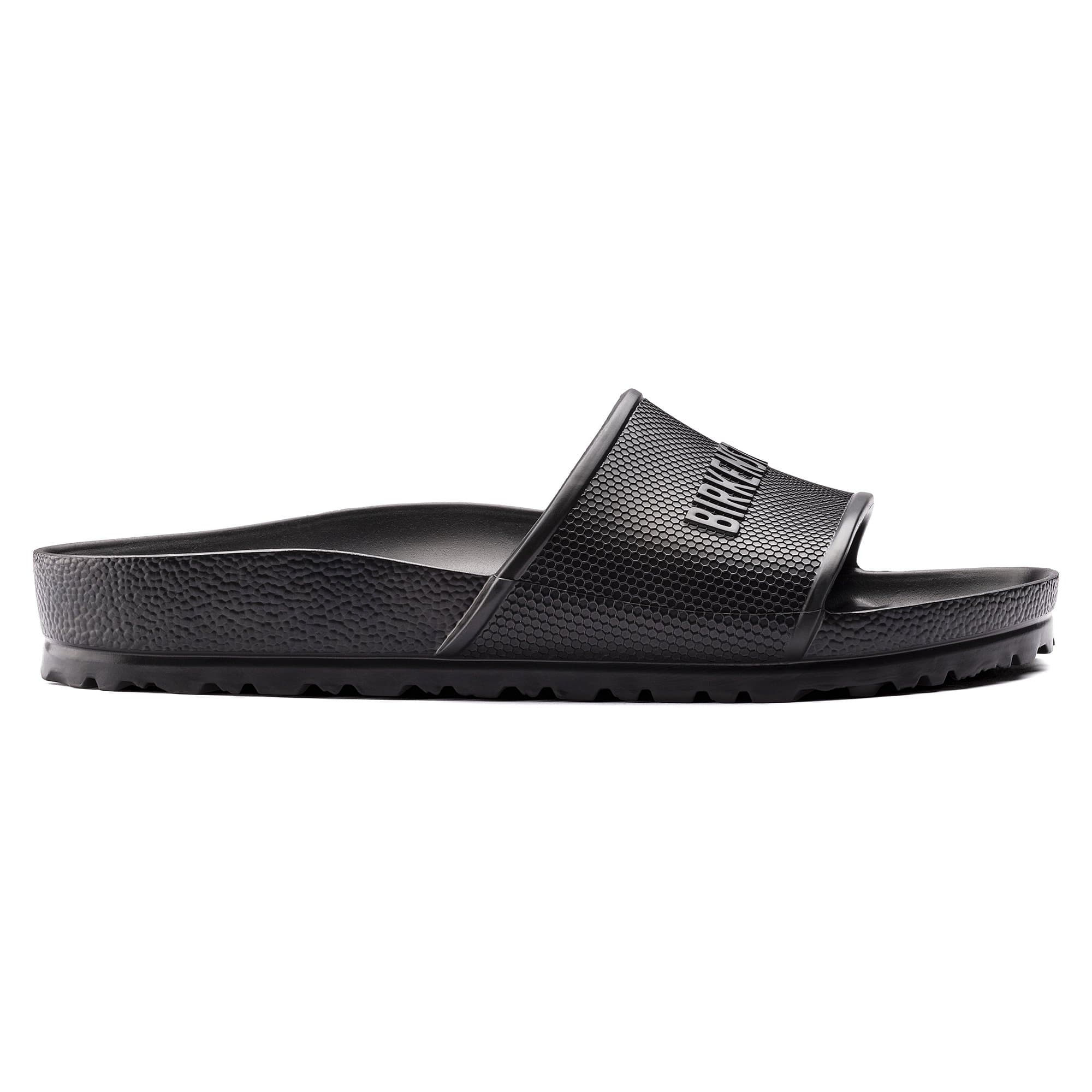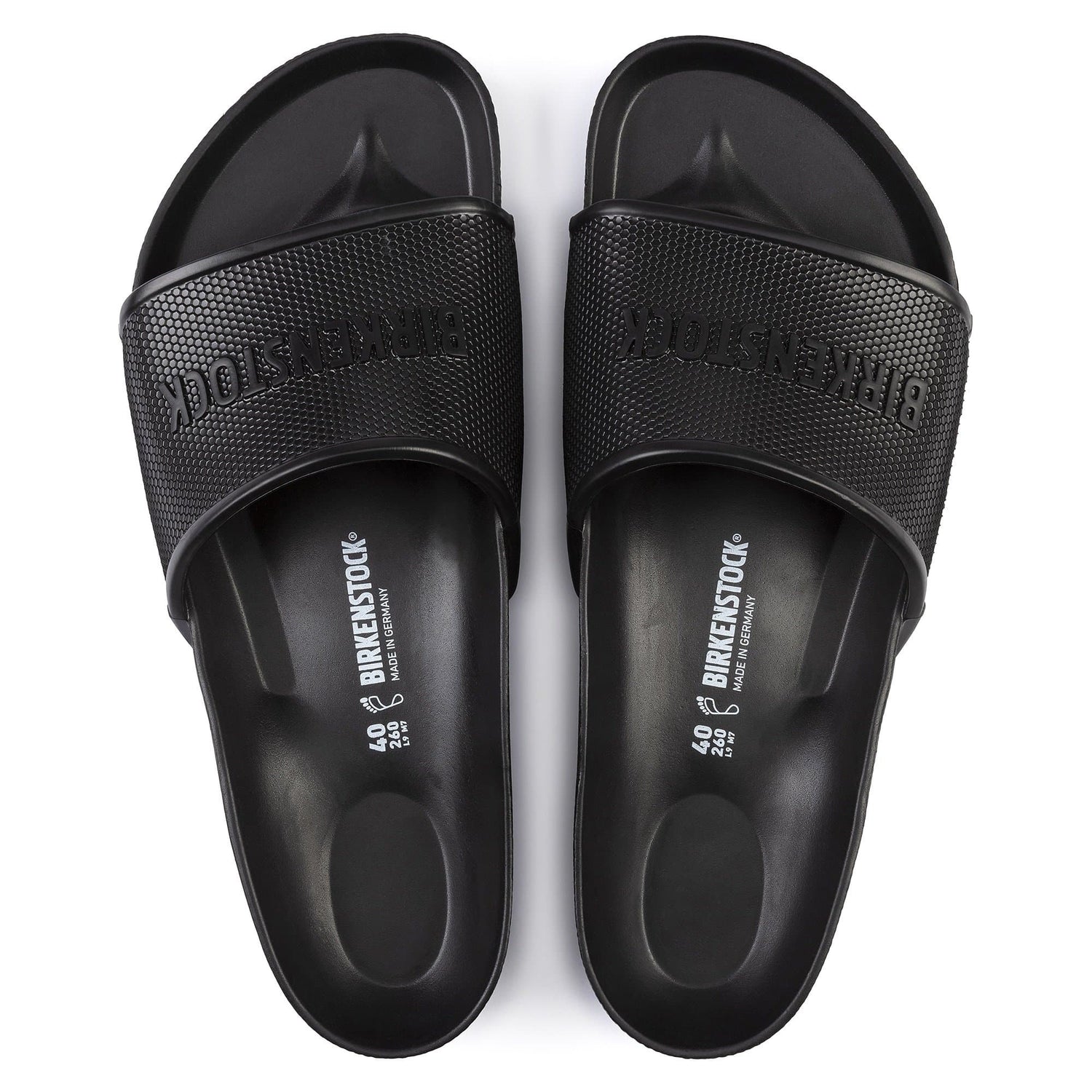 The BIRKENSTOCK Barbados is a sporty mule with a hexagon pattern and logo lettering. It's perfect for anyone who is looking in particular for function and comfort. Modeled on the cork sandal, this sandal is made from especially light and flexible EVA. This high-quality, odor-neutral synthetic material which has been tested for harmful substances is shock-absorbent, waterproof, and skin-friendly. It's therefore perfect for wearing at the beach, in the garden, or in wellness and spa areas.