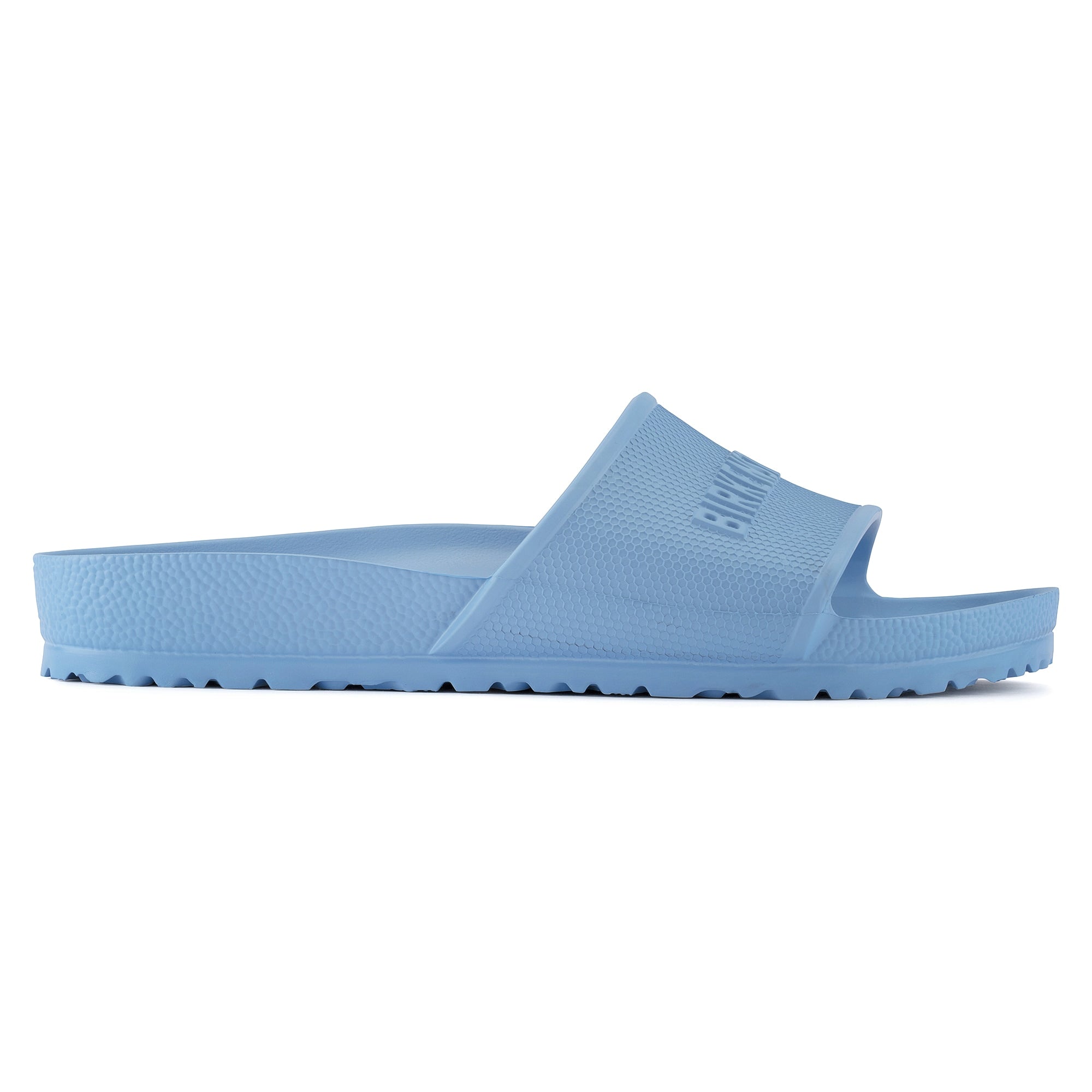The BIRKENSTOCK Barbados is a sporty mule with a hexagon pattern and logo lettering. It's perfect for anyone who is looking in particular for function and comfort. Modeled on the cork sandal, this sandal is made from especially light and flexible EVA. This high-quality, odor-neutral synthetic material which has been tested for harmful substances is shock-absorbent, waterproof, and skin-friendly. It's therefore perfect for wearing at the beach, in the garden, or in wellness and spa areas.