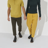 The BIRKENSTOCK Birmingham Slip On is a rustic Chelsea boot. The robust rubber outsole ensures a secure grip and can be repaired when worn down. The comfortable and light Deep Blue Footbed makes the shoe a perfect 24/7 all-rounder, especially on long and active days. Perfect for your next holiday, extensive walks or city trips. The classic is now available as a premium version with a leather runner board and striking stitching. The runner board constitutes the substructure of the footbed and is not visible. The upper is made from exceptionally high-quality Horween cowhide which was initially developed for use in professional sports.