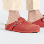 The BIRKENSTOCK Boston clog is a veritable classic that can easily be worn all year round. This version boasts a casual corduroy style. Perfect for authentic streetstyle outfits! The color-coordinated outsole rounds off the shoe's look of sophistication. The upper is made from soft, embossed suede.