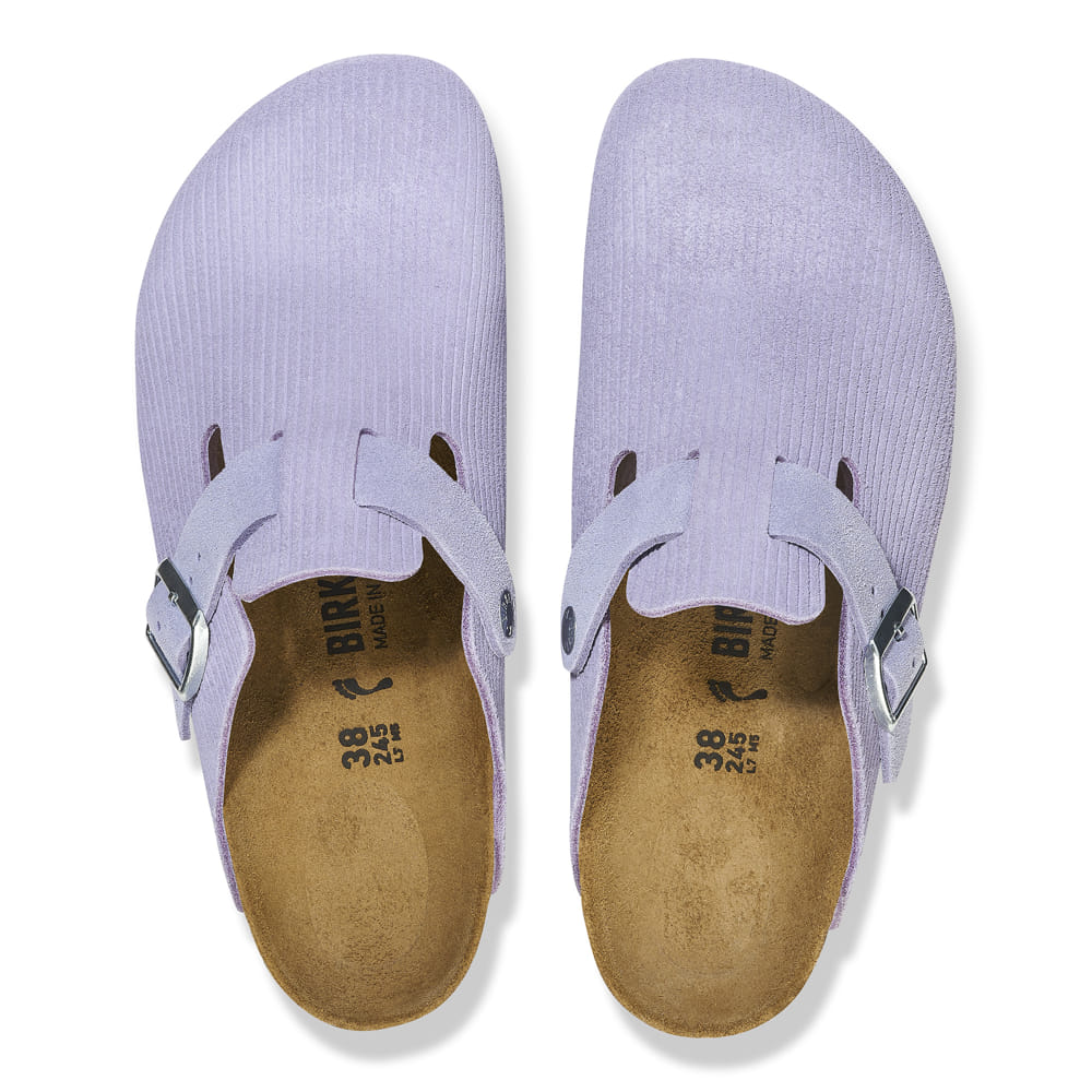 The BIRKENSTOCK Boston clog is a veritable classic that can easily be worn all year round. This version boasts a casual corduroy style. Perfect for authentic streetstyle outfits! The color-coordinated outsole rounds off the shoe's look of sophistication. The upper is made from soft, embossed suede.