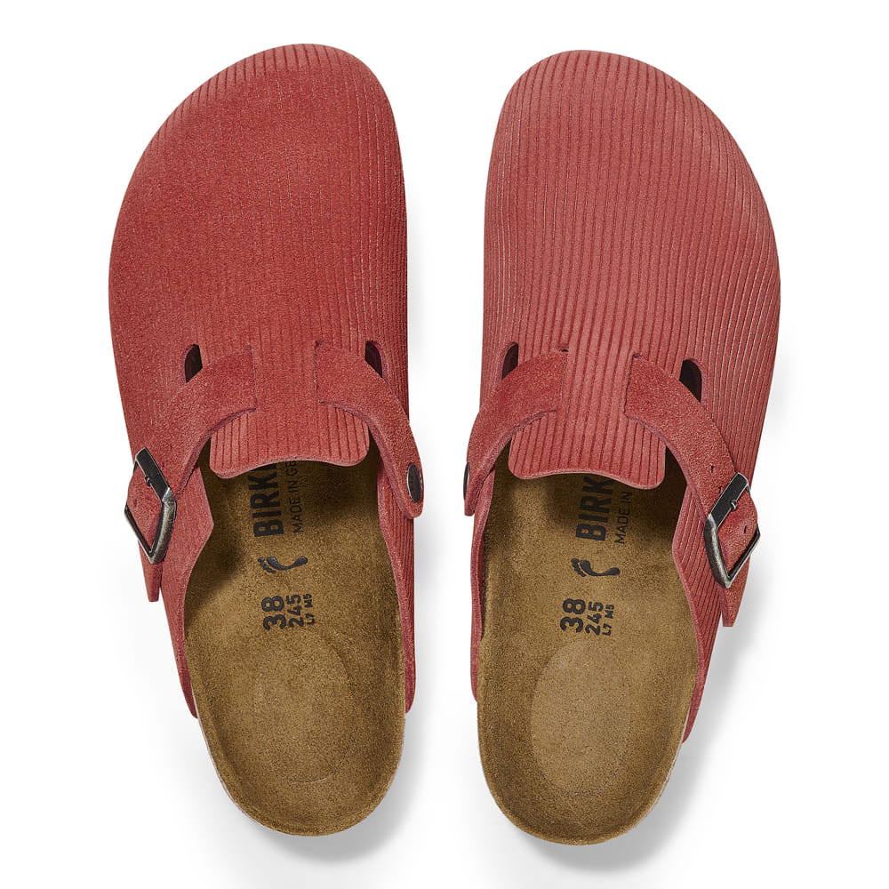 The BIRKENSTOCK Boston is a veritable classic that can easily be worn all year round. The Boston has a legendary status thanks to its sophisticated, individually adjustable design. This version boasts a casual corduroy style. Perfect for authentic streetstyle outfits! The upper is made from soft, embossed suede.