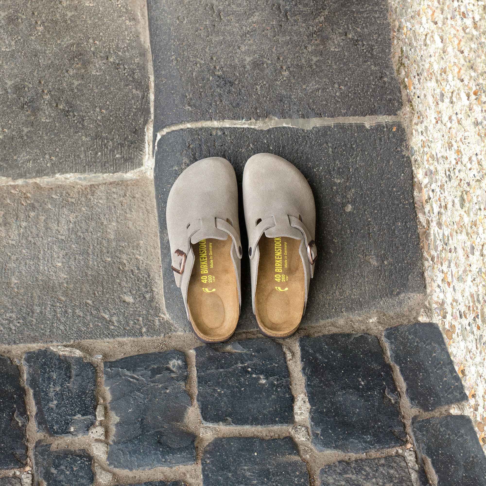 This exceptionally sophisticated yet highly casual version of the Boston clog, a classic BIRKENSTOCK model, comes with a shaft in soft suede. The robust and extremely lightweight EVA sole is very flexible, too. It facilitates a rolling motion that is good for feet and body.
