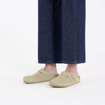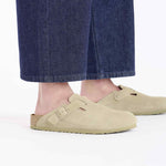 This exceptionally sophisticated yet highly casual version of the Boston clog, a classic BIRKENSTOCK model, comes with a shaft in soft suede. The robust and extremely lightweight EVA sole is very flexible, too. It facilitates a rolling motion that is good for feet and body.