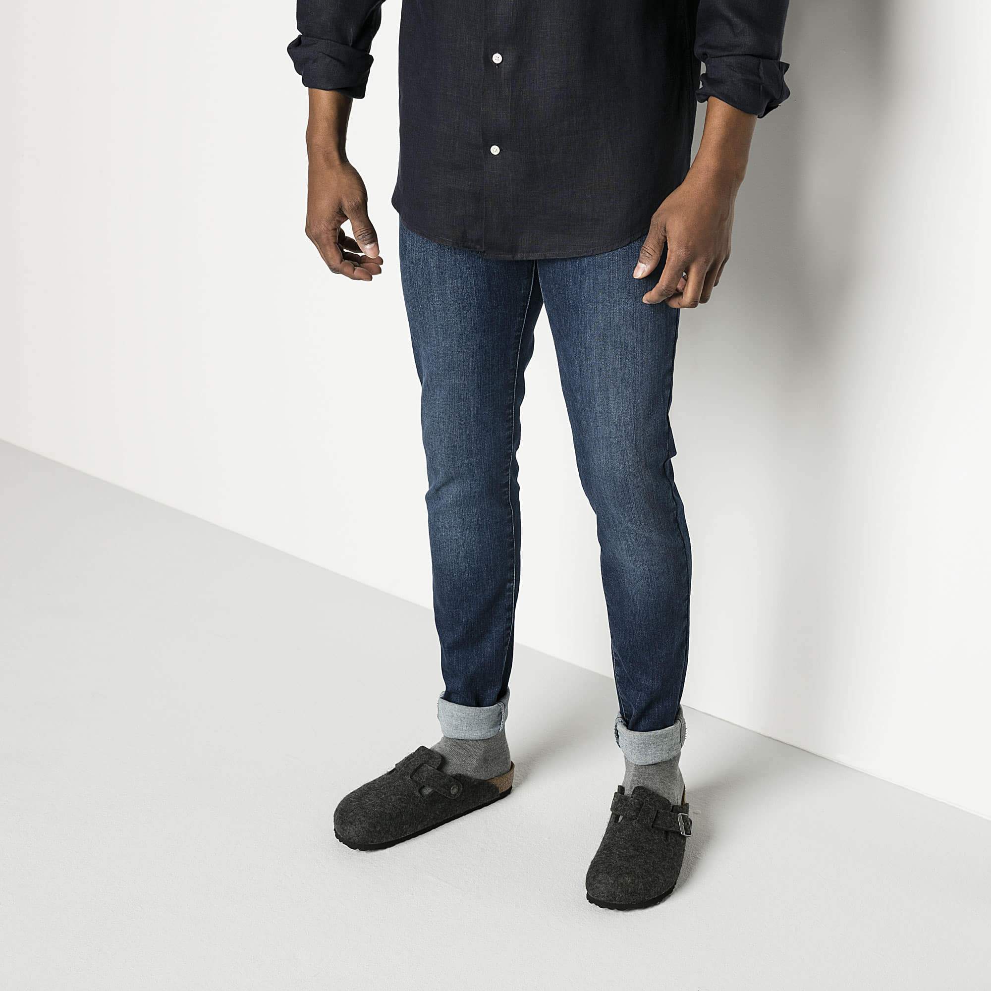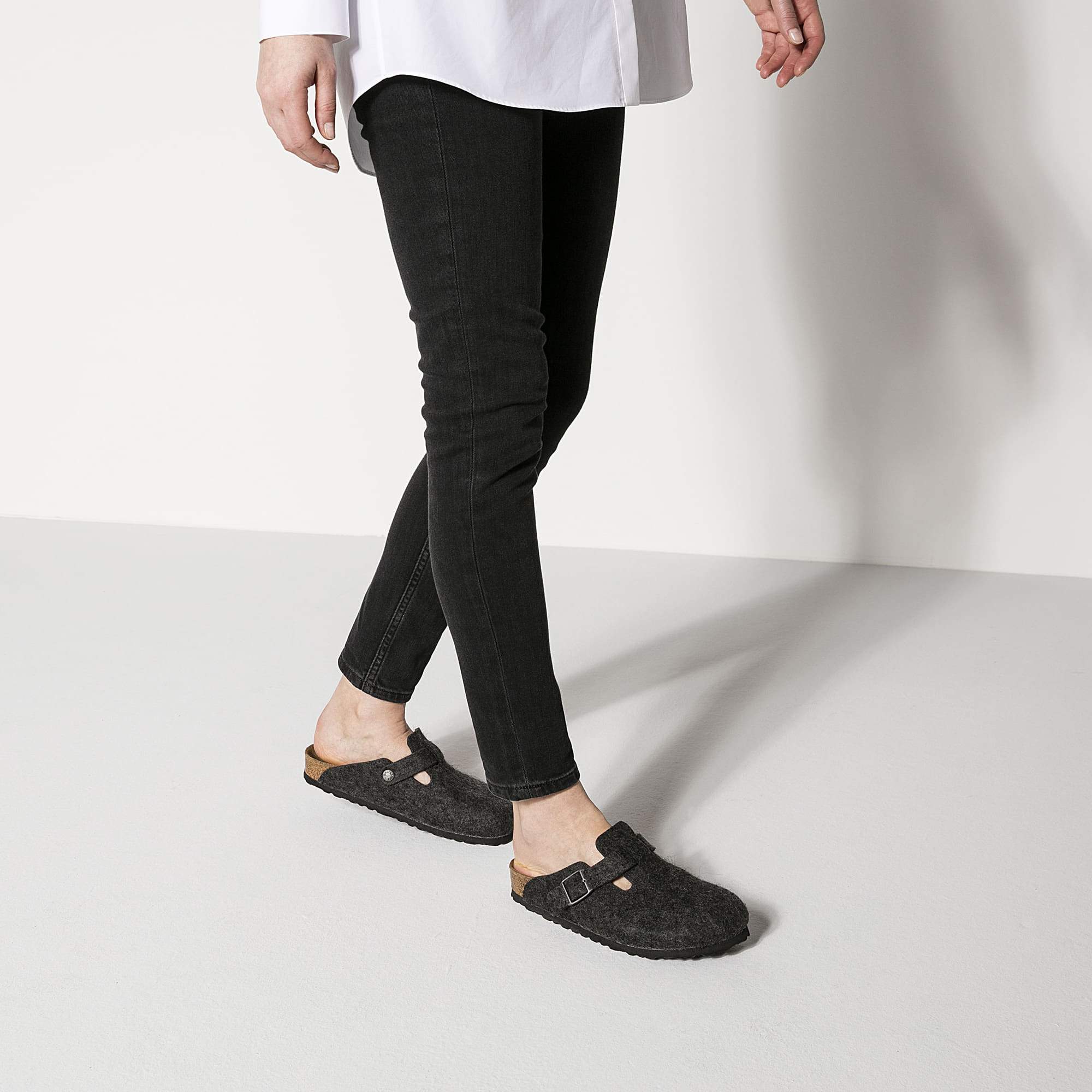 This version of the Boston clog, a classic BIRKENSTOCK model, comes with a shaft in soft, high-quality woolen felt. The clog can be adapted to all feet thanks to a strap on the upper edge of the shaft and a sturdy metal buckle.