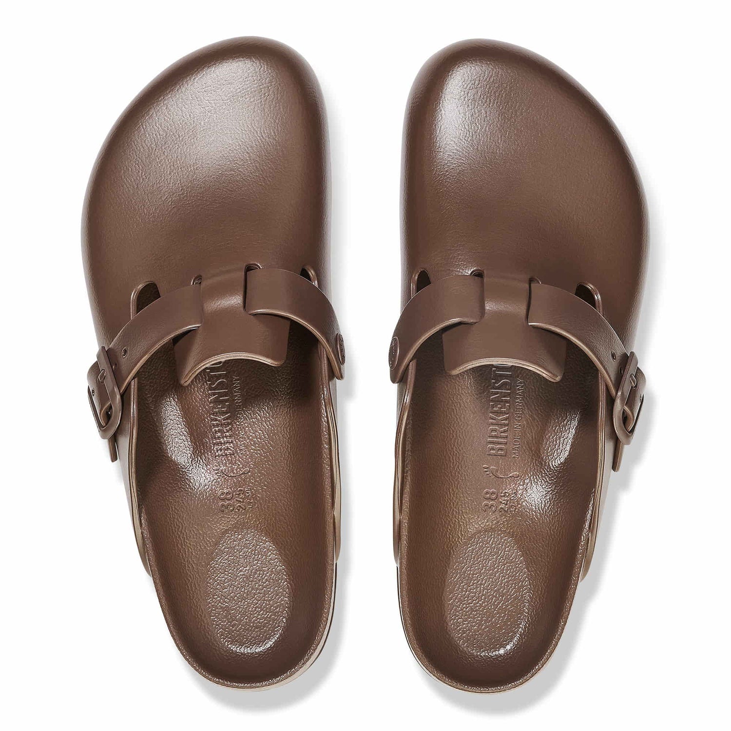 The BIRKENSTOCK Boston is a veritable classic that can easily be worn all year round. The Boston has a legendary status thanks to its sophisticated, individual design. Modeled on the cork sandal, it is made from the ultra lightweight and highly flexible synthetic material EVA. The high-quality, odor-neutral EVA has been tested for harmful substances and combines numerous positive attributes: it is very light, highly elastic, shock-absorbent, waterproof, and skin-friendly.