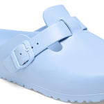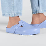 The BIRKENSTOCK Boston is a veritable classic that can easily be worn all year round. The Boston has a legendary status thanks to its sophisticated, individual design. Modeled on the cork sandal, it is made from the ultra lightweight and highly flexible synthetic material EVA. The high-quality, odor-neutral EVA has been tested for harmful substances and combines numerous positive attributes: it is very light, highly elastic, shock-absorbent, waterproof, and skin-friendly.