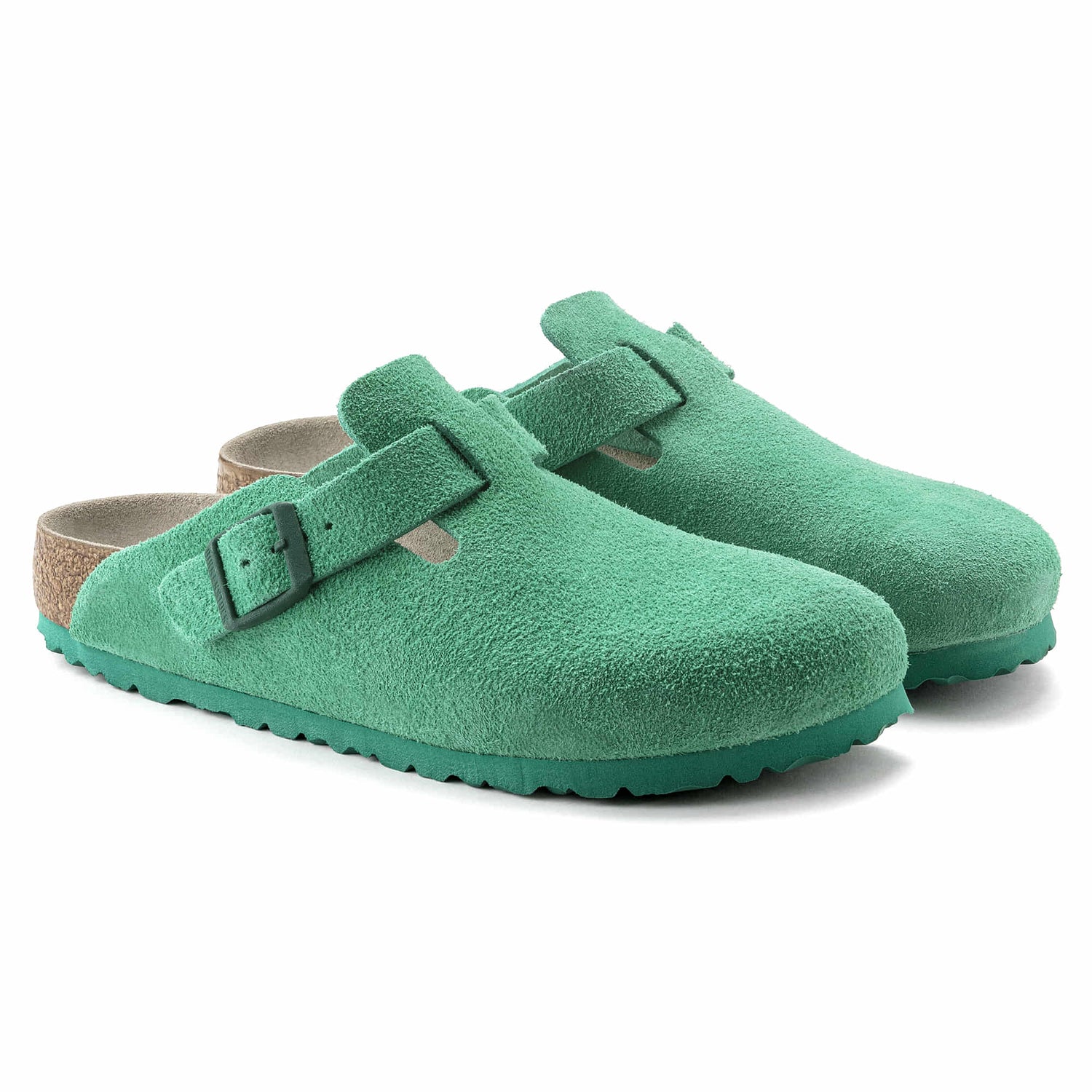 The BIRKENSTOCK Boston clog is a veritable classic that can easily be worn all year round. The color-coordinated buckles with a textile feel and a matte design as well as the color-coordinated outsole are additional eye-catchers. With its additional foam layer, the soft footbed offers extra comfort and pampers feet all day long. The upper is made from soft suede.