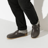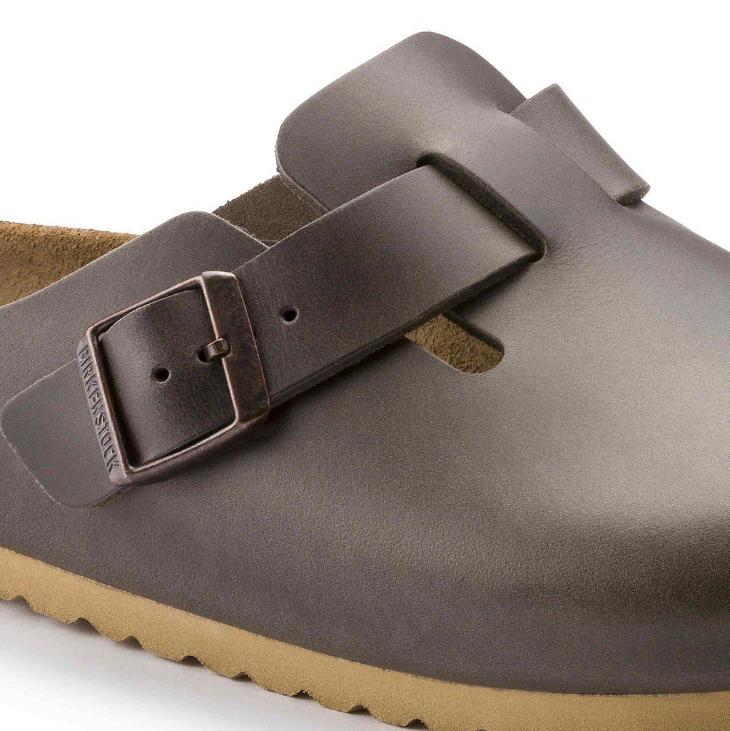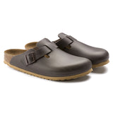 The BIRKENSTOCK Boston clog is a genuine classic that can be worn all year round. This model features a vintage finish and a natural-looking patina. The colour-coordinated outsole rounds off the sophisticated look of this shoe. The soft footbed provides extra comfort thanks to the additional foam insert and protects your foot throughout the day. The upper is made of soft, high-quality natural leather.