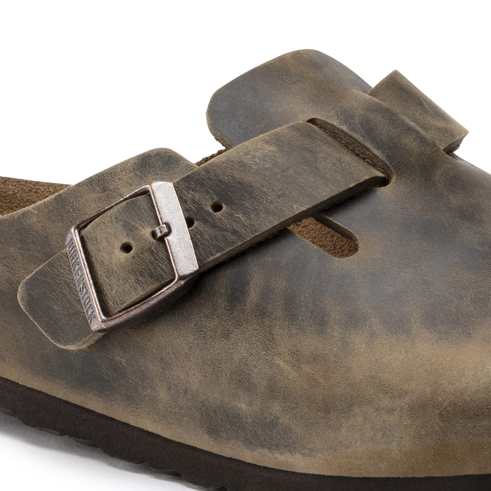 The BIRKENSTOCK Boston is a veritable classic that can easily be worn all year round. The Boston has a legendary status thanks to its sophisticated, individual design. With its additional foam layer, the soft footbed offers extra comfort and pampers feet “ all day long. The upper is made from extra thick, oiled nubuck leather with an open-selvage finish.