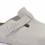 The BIRKENSTOCK Boston clog is a veritable classic that can easily be worn all year round. The color-coordinated buckles with a textile feel and a matte design as well as the color-coordinated outsole are additional eye-catchers. The upper is made from soft suede.