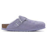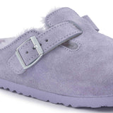 The BIRKENSTOCK Boston is a veritable classic that can easily be worn all year round. The Boston has a legendary status thanks to its sophisticated, individually adjustable design. Here, this classic model comes in an especially cozy version with shearling lining and padding. The perfect shoe for cozy winter evenings by an open fire! The upper is made from soft suede.