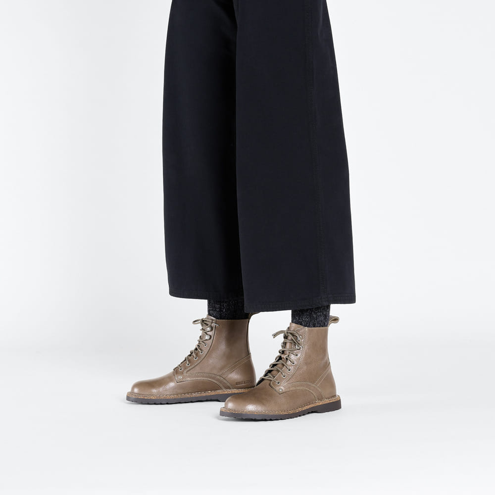 The BIRKENSTOCK Bryson is a casual lace-up boot. It boasts an understated, rustic look. The cork frame of the outer sole makes for an authentic design. The upper is made of soft natural leather.