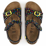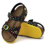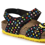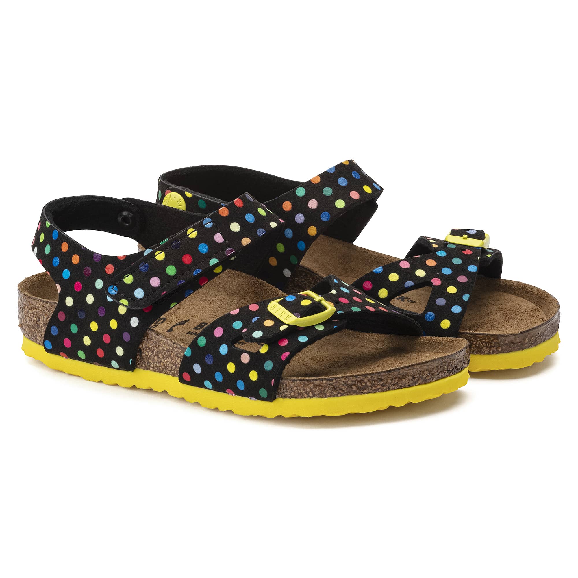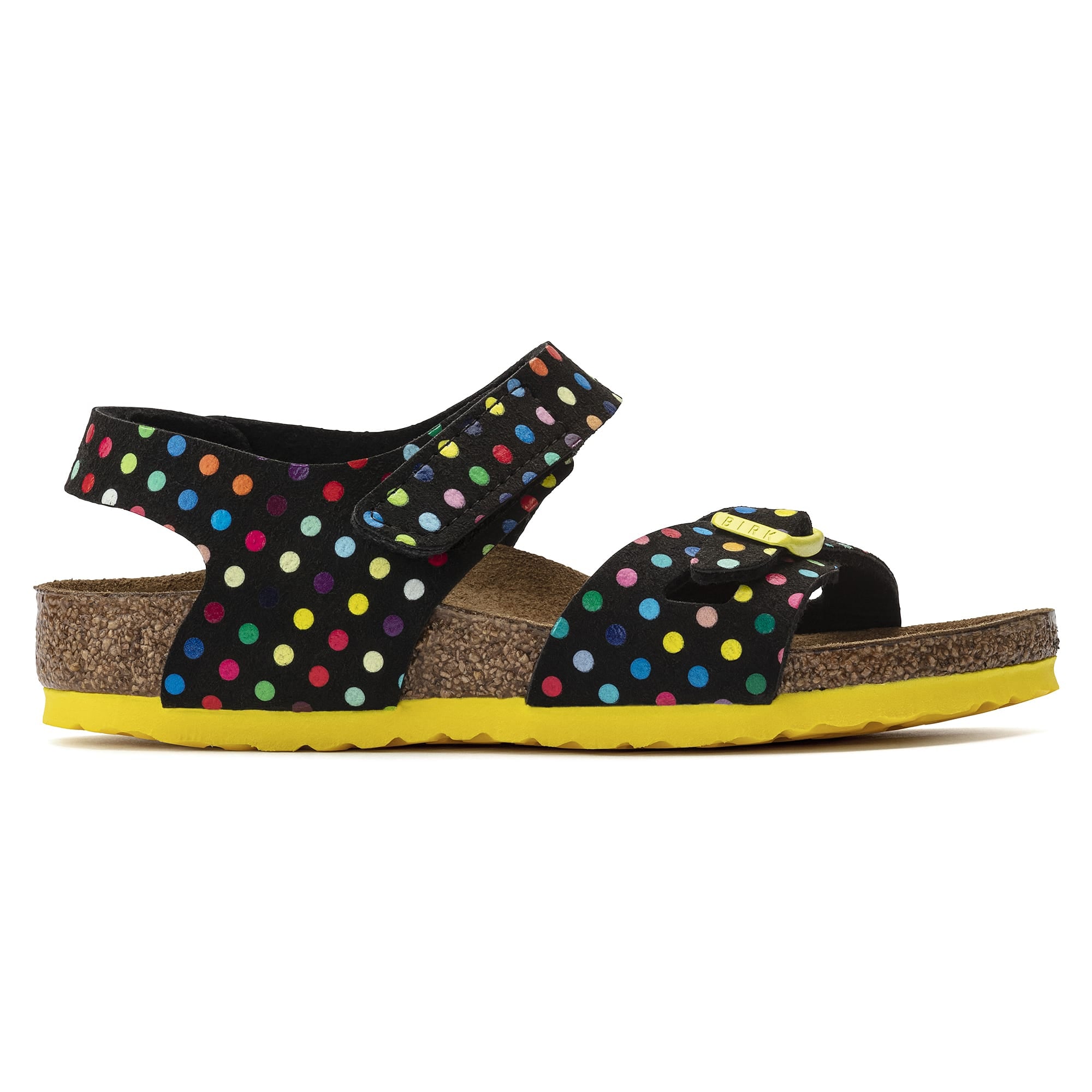 The BIRKENSTOCK Colorado is a variation on the classic Rio. The buckle at the ankle strap has been replaced by a hook-and-loop fastener, allowing it to be put on and taken off in an instant “ perfect for kids impatient feet! This version comes in a creatively vibrant play of colors and is just the thing for fans of the polka-dot print. The upper is made from skin-friendly microfiber.